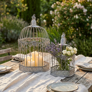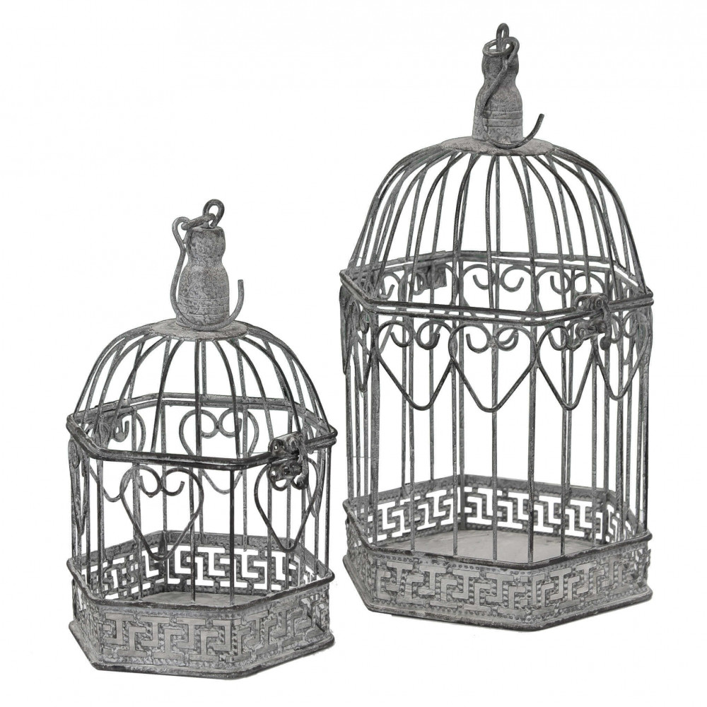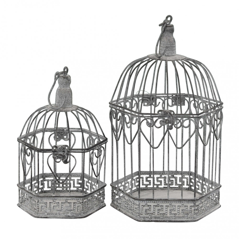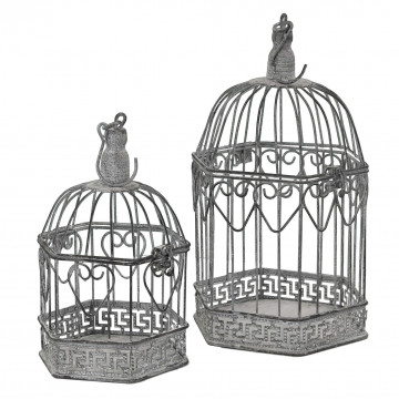 SET DI 2 GABBIE SOPHIE ESAGONALI BIANCO OSSIDATO