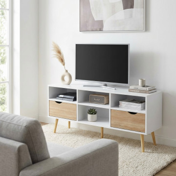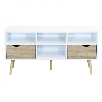 - Dati Tecnici Porta TV con 2 cassetti e 4 ripiani in legno bianco e grigio sbiancato Dimensioni: cm 117 x 39 x 58 h