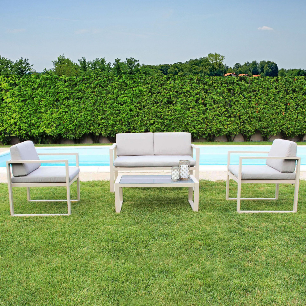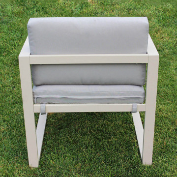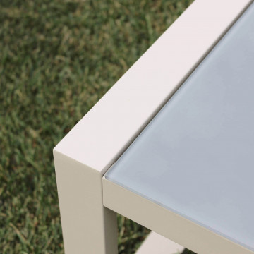 Struttura in alluminio verniciato BIANCO, TORTORA, TAUPE o ANTRACITE, cuscini in poliestere vetro tavolino 5 mm Dimensioni: D.120x66x63/P.65x66x63/T.92x51,5x35