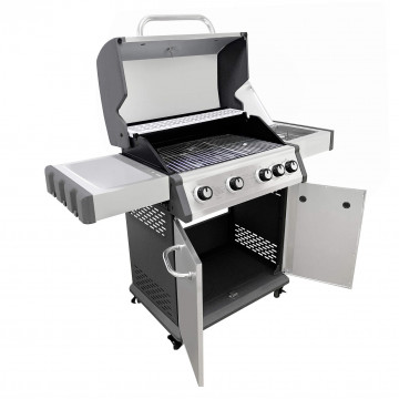 Barbeque in acciao 4 fuochi + 1 laterale 2 griglie in acciaio 23x41 + 1 griglia in acciaio 23x41<br>Dimensioni: cm 133 x 57 x 114 h
