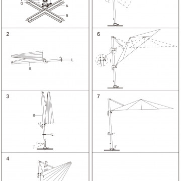 Telo in poliestere BIANCO 250 gr con antivento palo girevole in alluminio 53x77 e 25x40 mm 8 stecche alluminio 14 x 24 mm, base a crociera Dimensioni: m 3 x 3