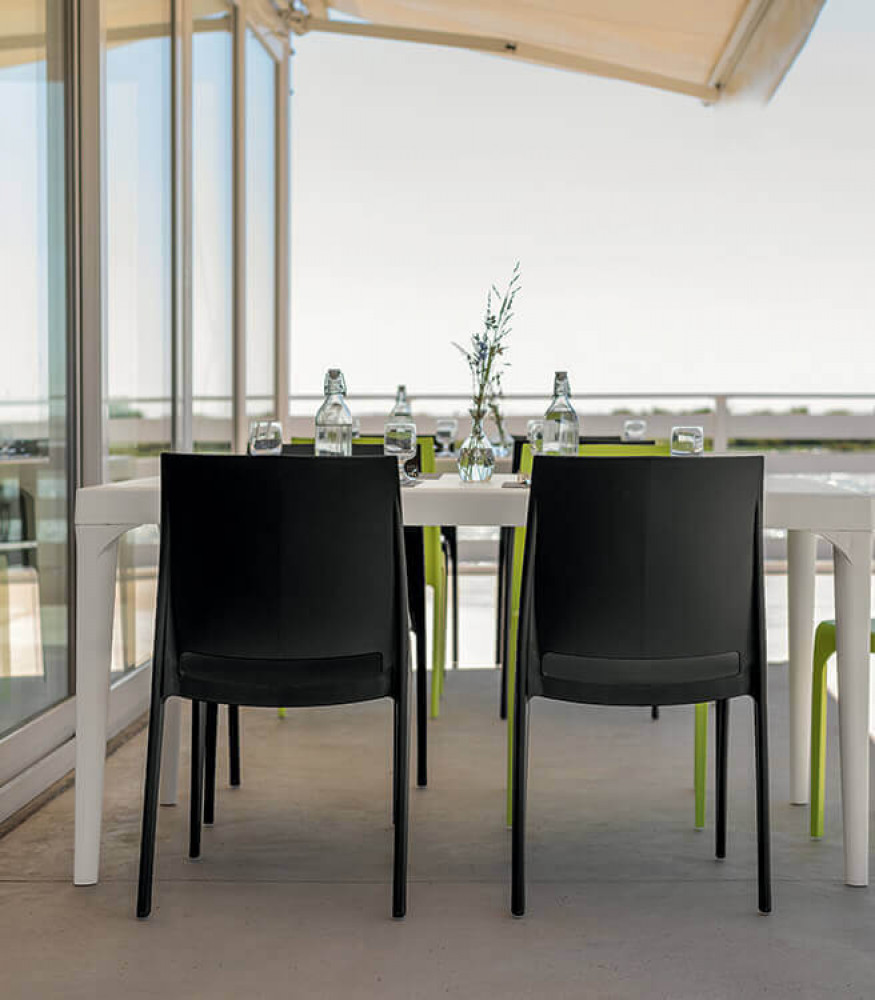 Sedia impilabile in polipropilene e fibra di vetro con tappi antiscivolo BIANCA, BLU, GRIGIA, NERA, VERDE, ROSSA o TAUPE Dimensioni: cm 46 x 54 x 80 h