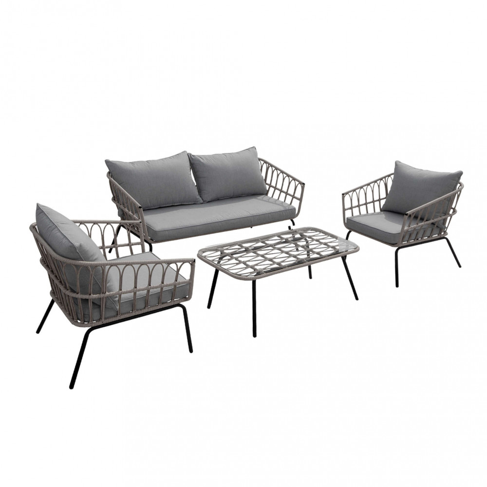 - Dati Tecnici Struttura in metallo GRIGIO SCURO cuscini in poliestere Dimensioni: D.143x70,5x73,5/P.68x70,5x73,5/T.95x50x44,5