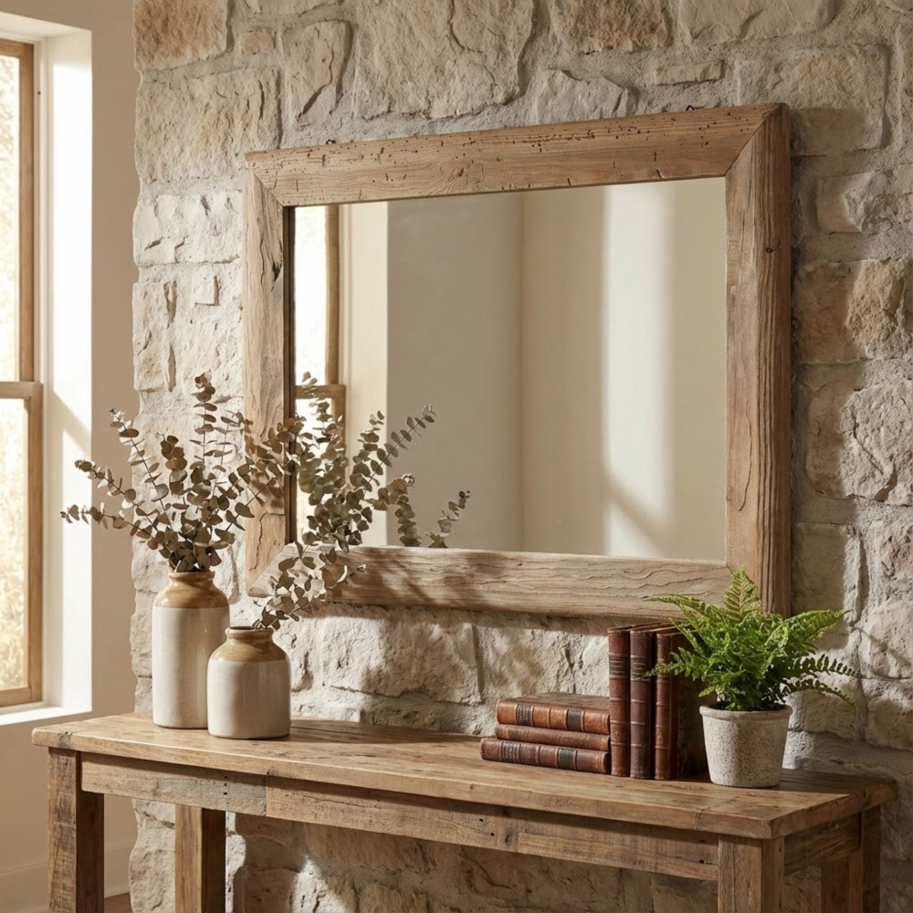 - Dati Tecnici Specchio in legno di pino riciclato Dimensioni: cm 50,5 x 3,5 x 70,5 h