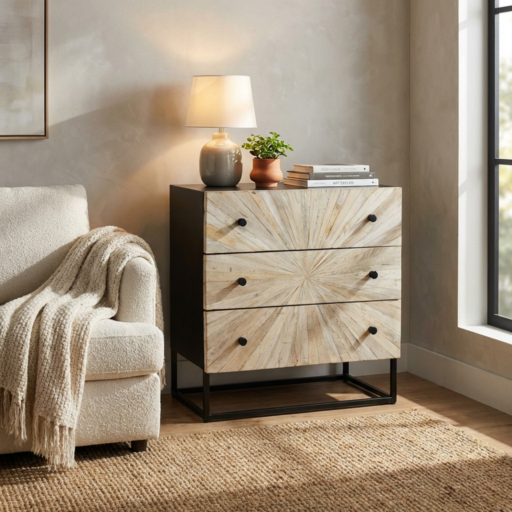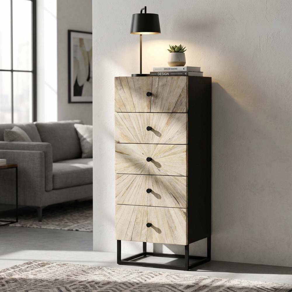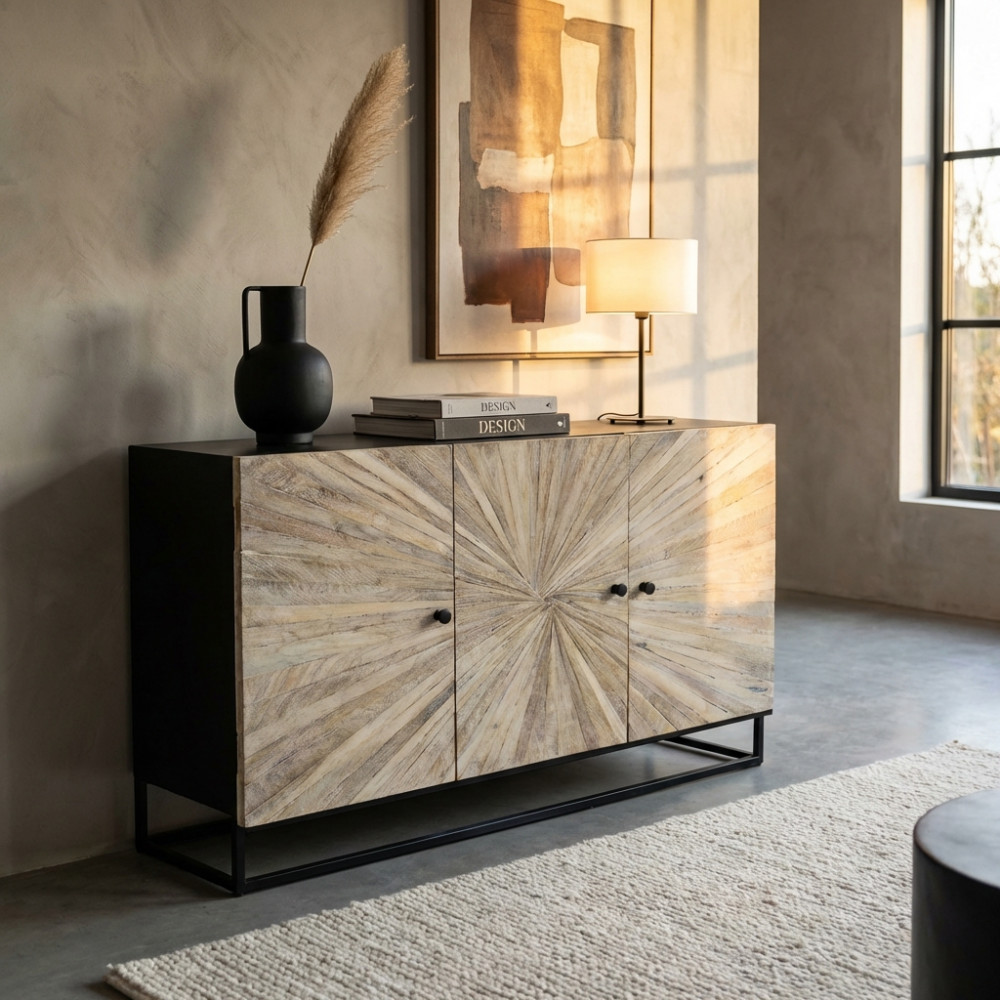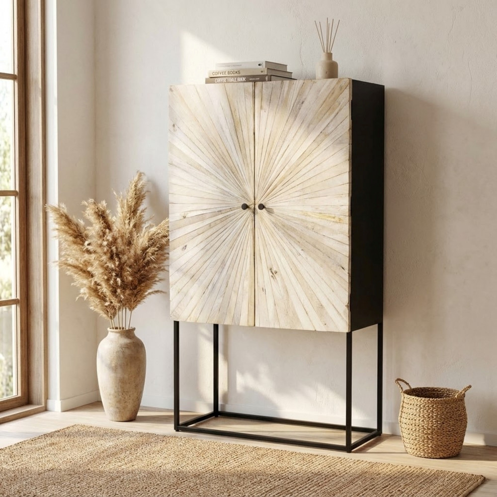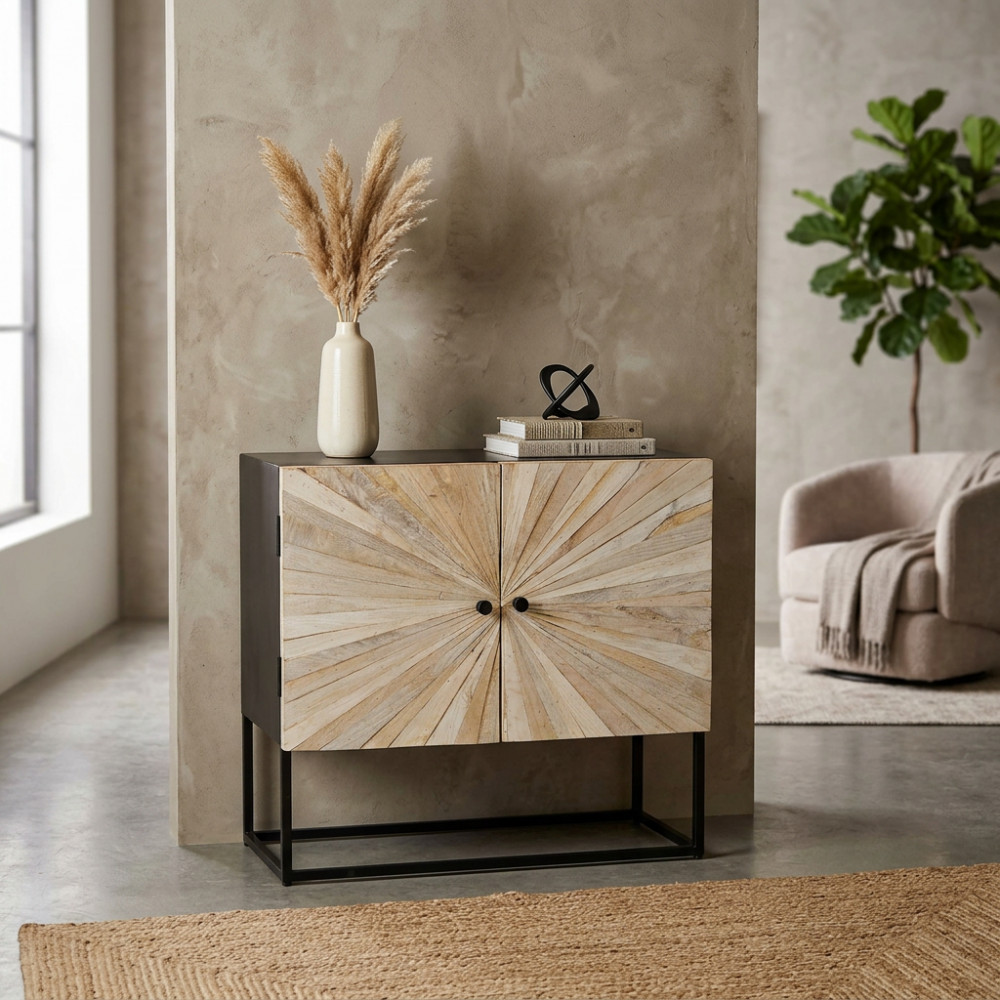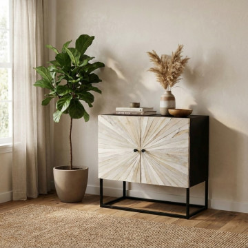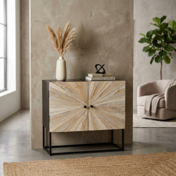 - Dati Tecnici Mobile con decoro naturale con 2 ante in legno di mango con struttura in ferro Dimensioni: cm 85 x 40 x 80 h