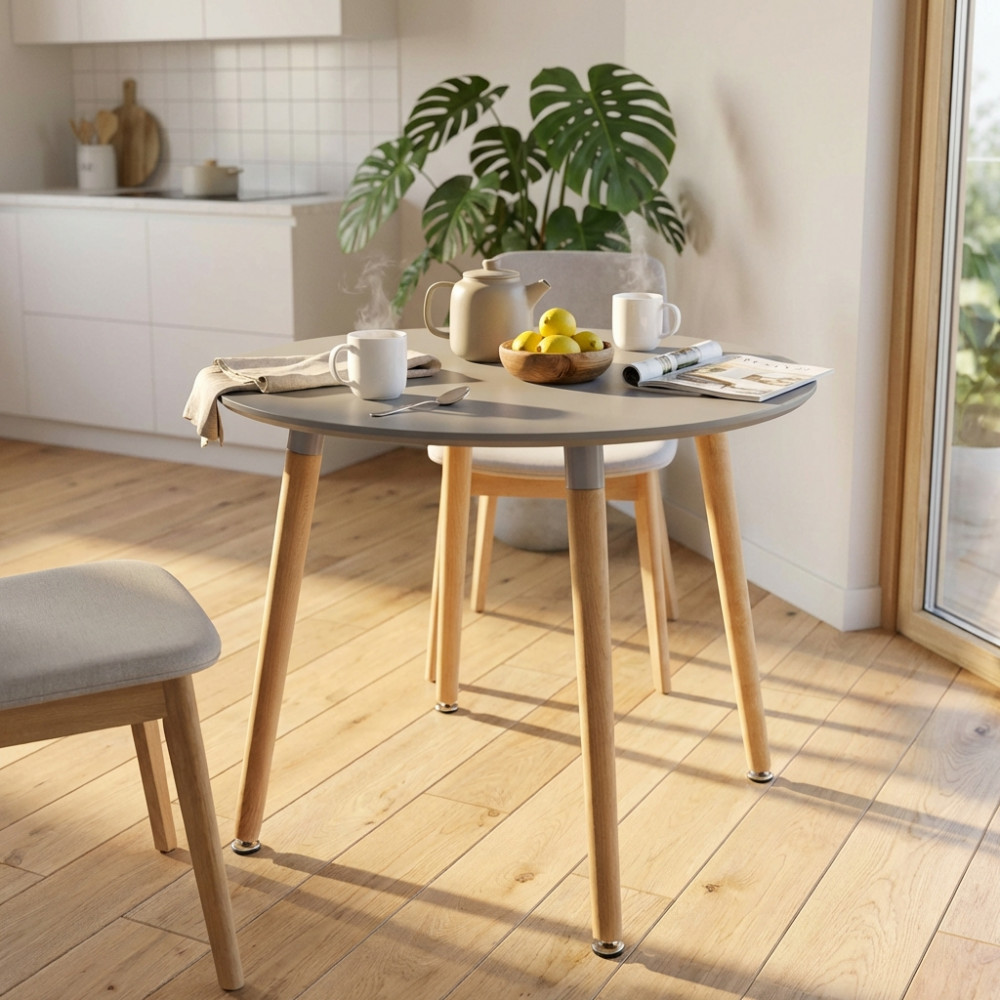 Piano in ABS colore grigio, gambe in legno Dimensioni: cm 140 x 80 x 75 h