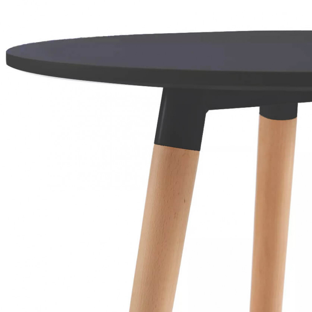 - Dati Tecnici Piano in ABS colore nero, gambe in legno Dimensioni: cm Ø 80 x 75 h
