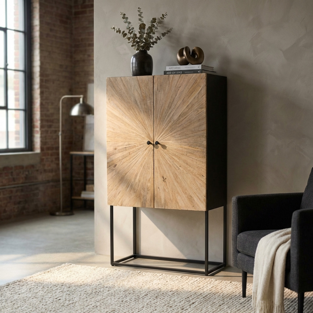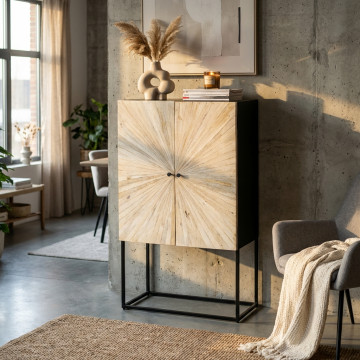 - Dati Tecnici Mobile con decoro naturale con 4 ante in legno di mango con struttura in ferro Dimensioni: cm 90 x 40 x 160 h
