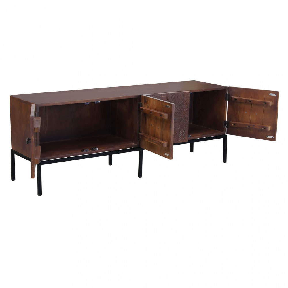 - Dati Tecnici Porta tv con decoro wengé con 4 ante in legno di mango con struttura in ferro Dimensioni: cm 150 x 40 x 55 h