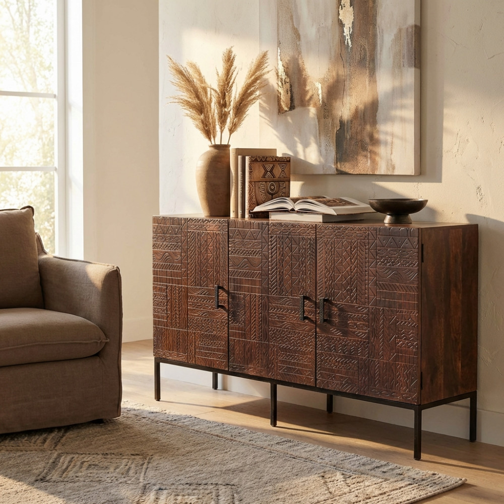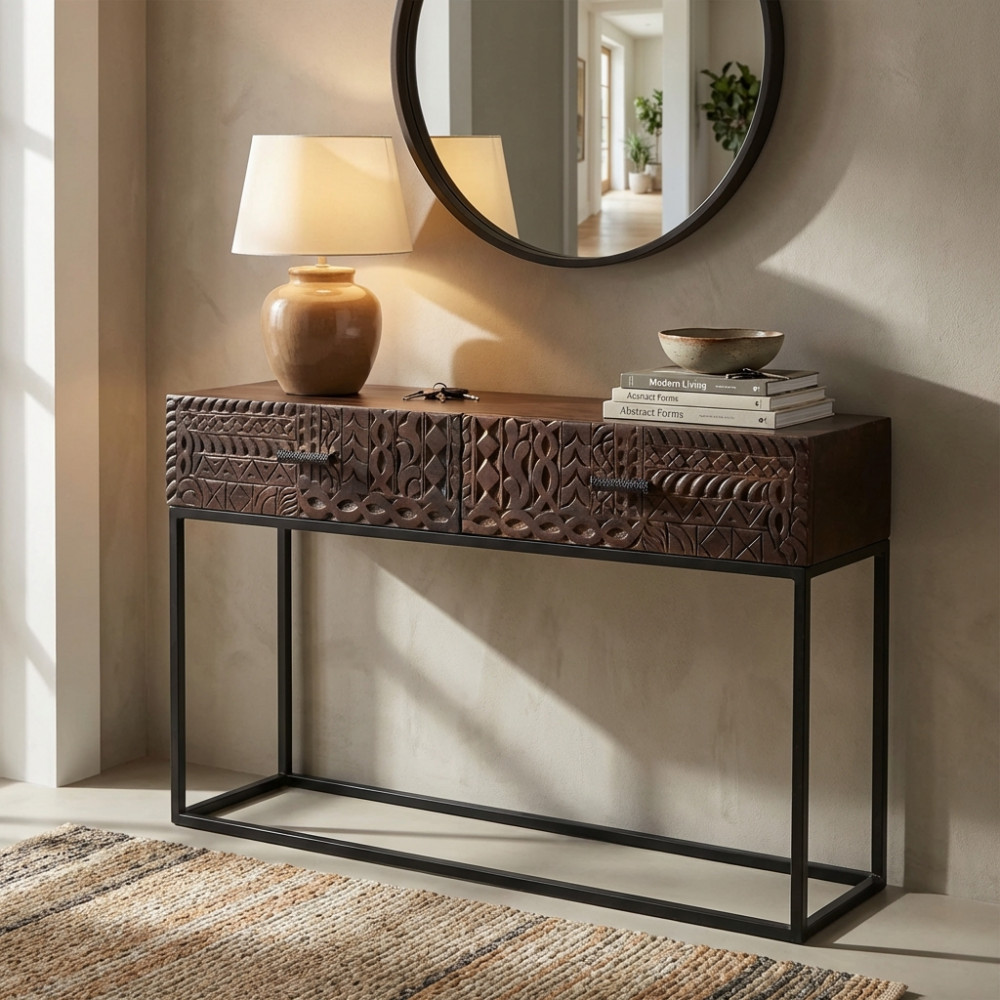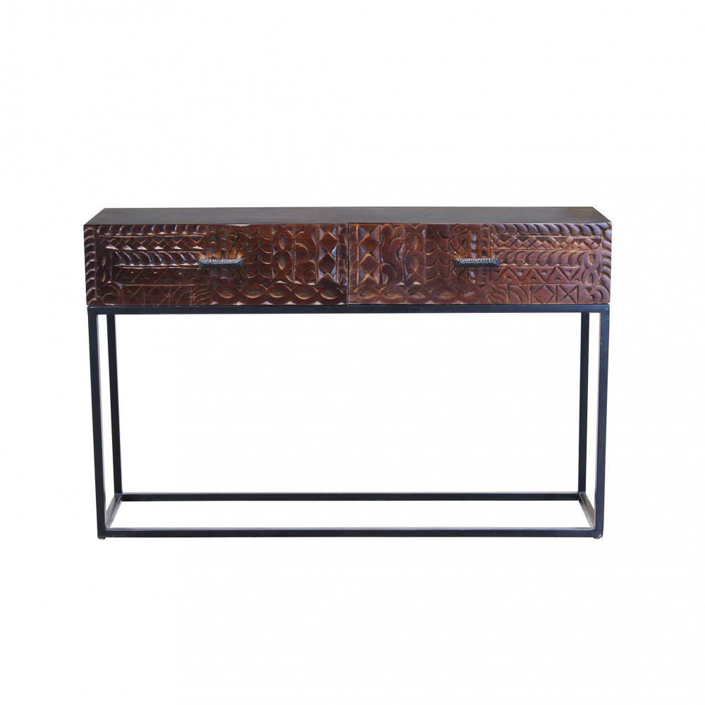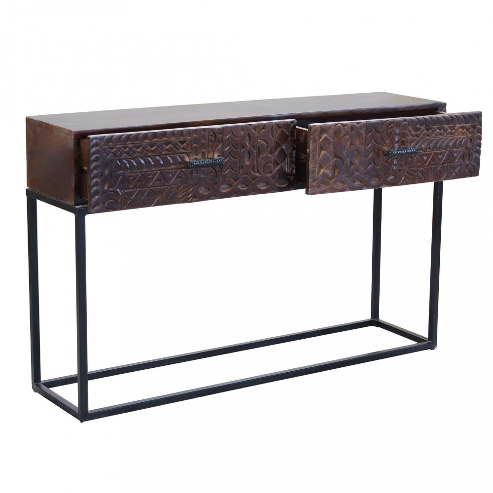 - Dati Tecnici Consolle con decoro wengé in legno di mango con struttura in ferro Dimensioni: cm 120 x 30 x 76 h