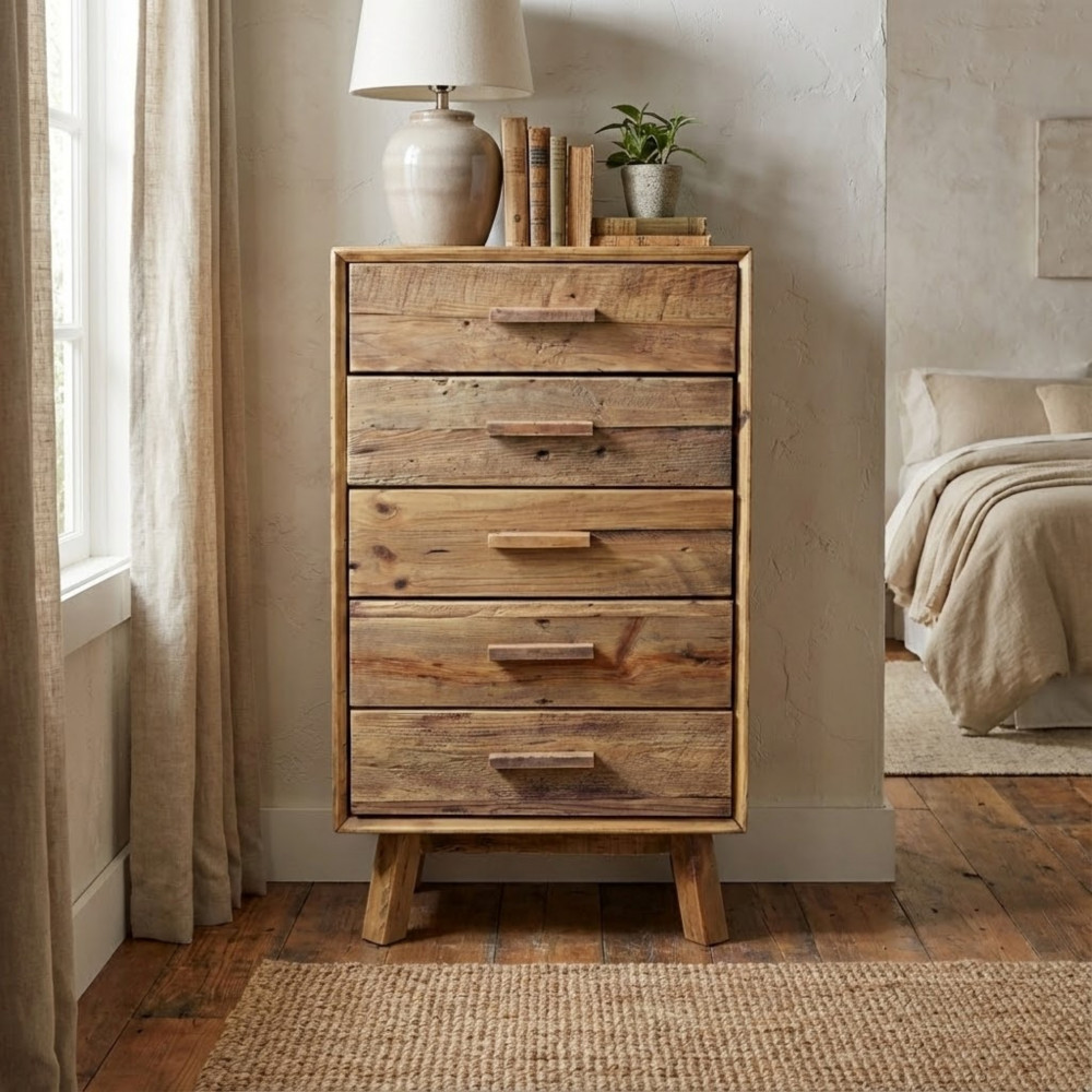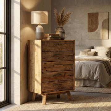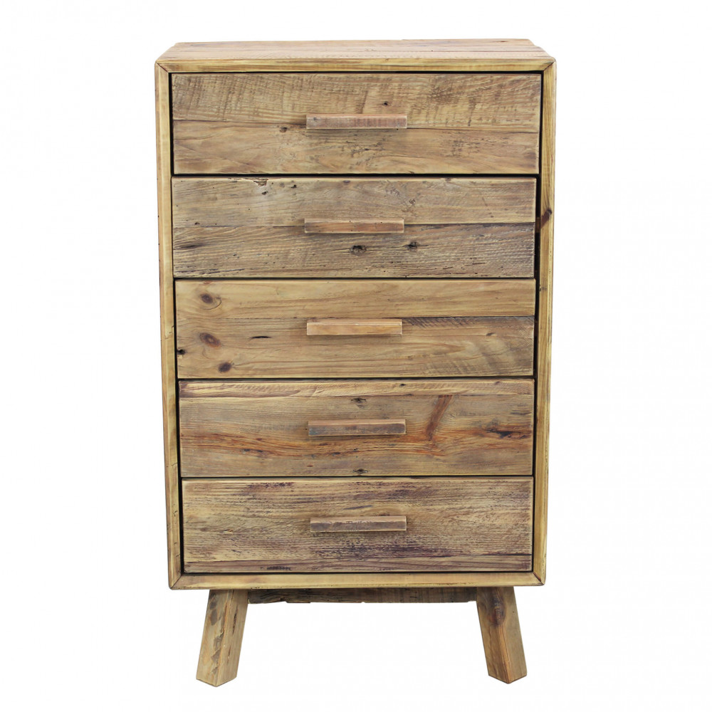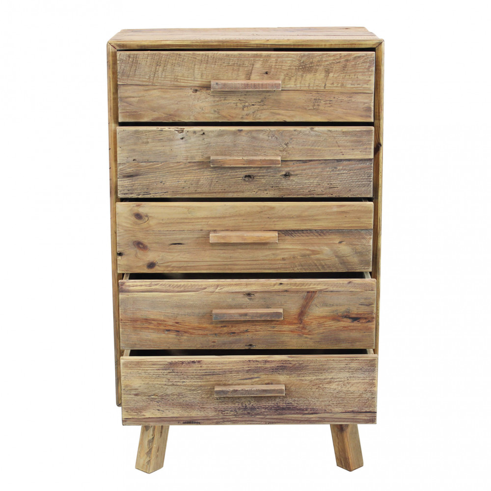 - Dati Tecnici Cassettiera con 5 cassetti in legno di pino riciclato Dimensioni: cm 60 x 40 x 100,5 h