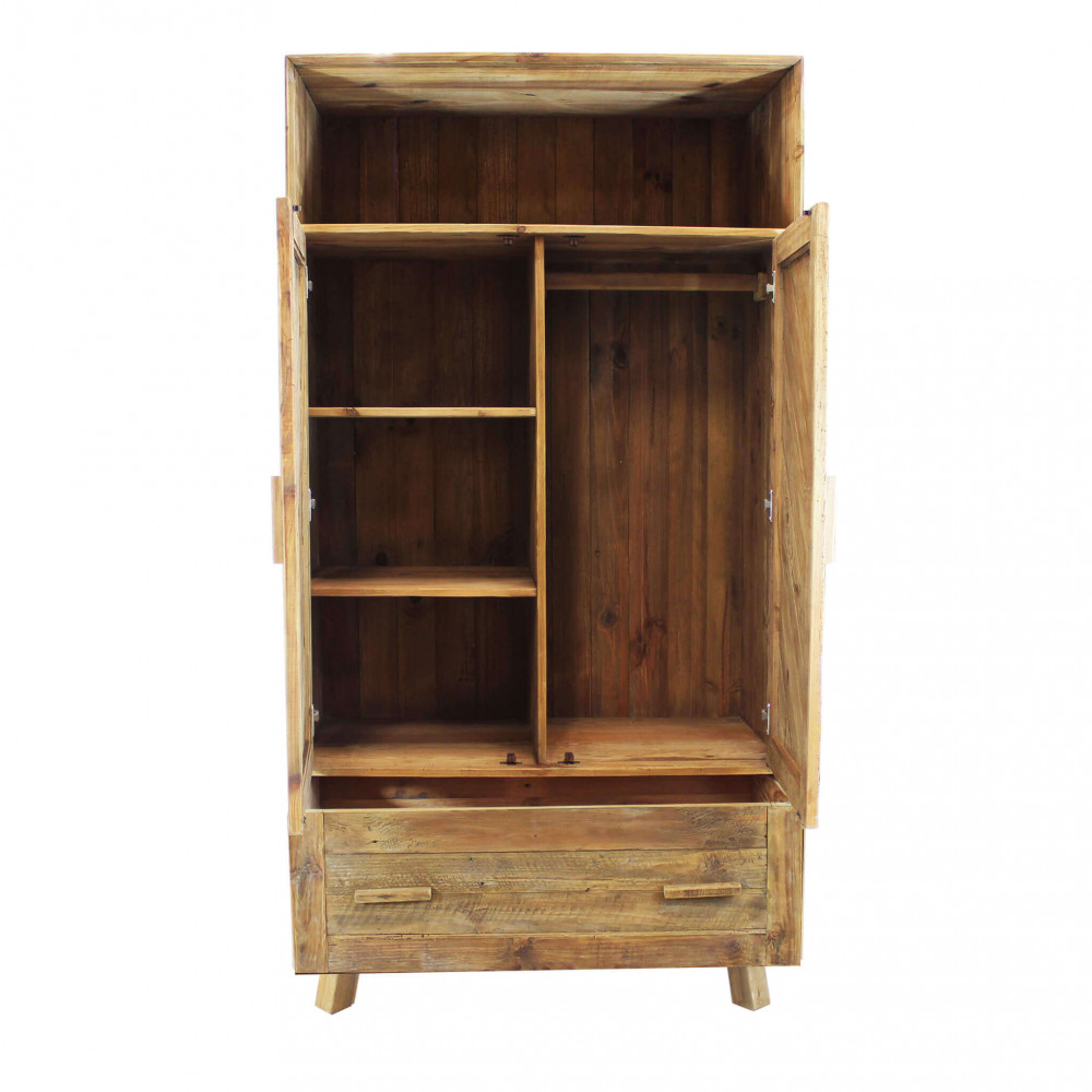 - Dati Tecnici Mobile con 1 ripiani , 2 ante e 1 cassetti legno di pino riciclato Dimensioni: cm 106 x 55 x 200 h