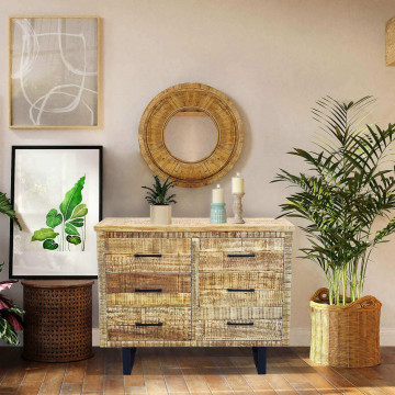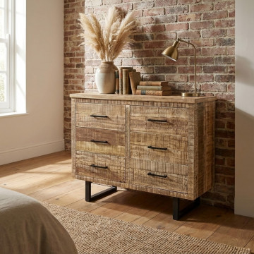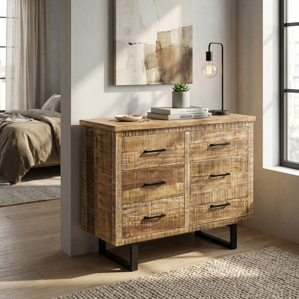 - Dati Tecnici Mobile naturale con 6 cassetti con gambe in metallo nero Dimensioni: cm 100 x 45 x 83 h