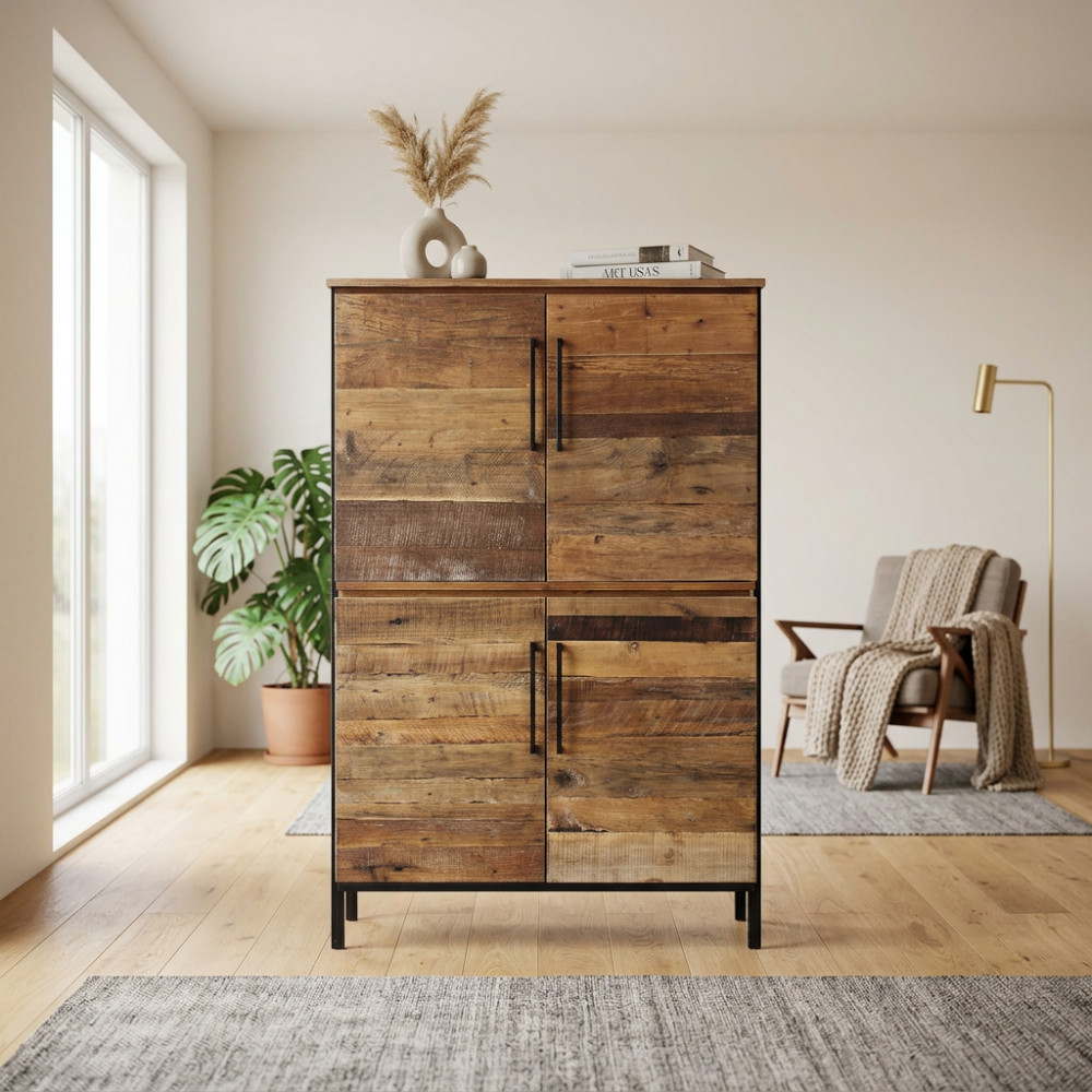 - Dati Tecnici Mobile naturale con 4 ante con gambe in metallo nero Dimensioni: cm 100 x 40 x 160 h