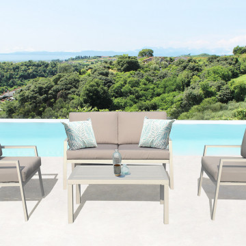 Struttura in alluminio BIANCA o ANTRACITE o TORTORA o TAUPE cuscini in poliestere 10 cm Dimensioni: D.128x77x79/P.68x77x797T.51,5x95x46