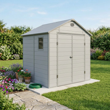 Casetta in plastica con finestra MARRONE o GRIGIO CHIARO Dimensioni: cm 190 x 192 x 226 h
