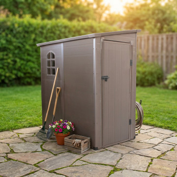 Casetta in plastica con finestra MARRONE o GRIGIO CHIARO Dimensioni: cm 111 x 191 x 194 h