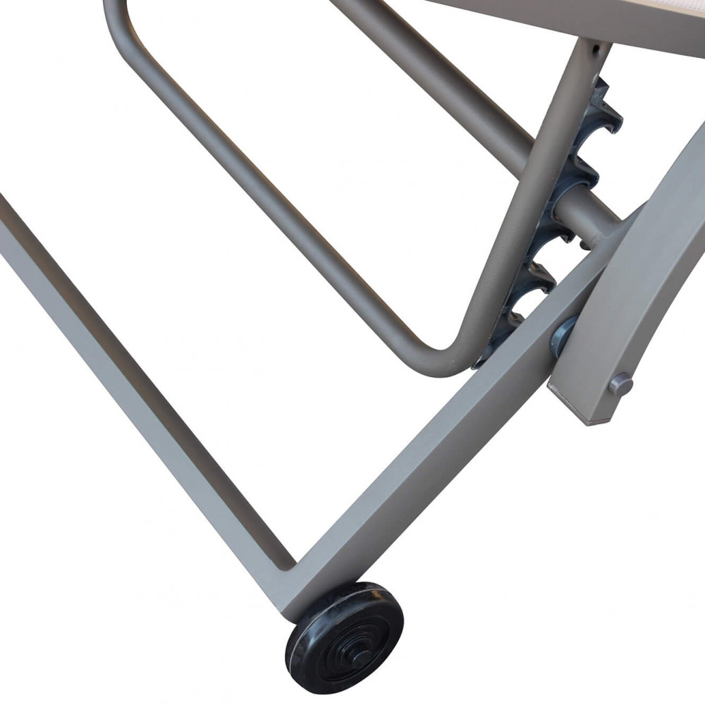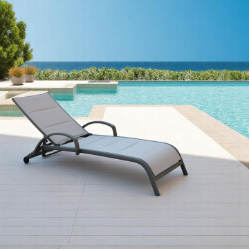 Struttura in alluminio verniciato BIANCO, TAUPE o ANTRACITE Textilene imbottito ECRU' con braccioli Dimensioni: cm 196,5 x 71 x 92,5 h