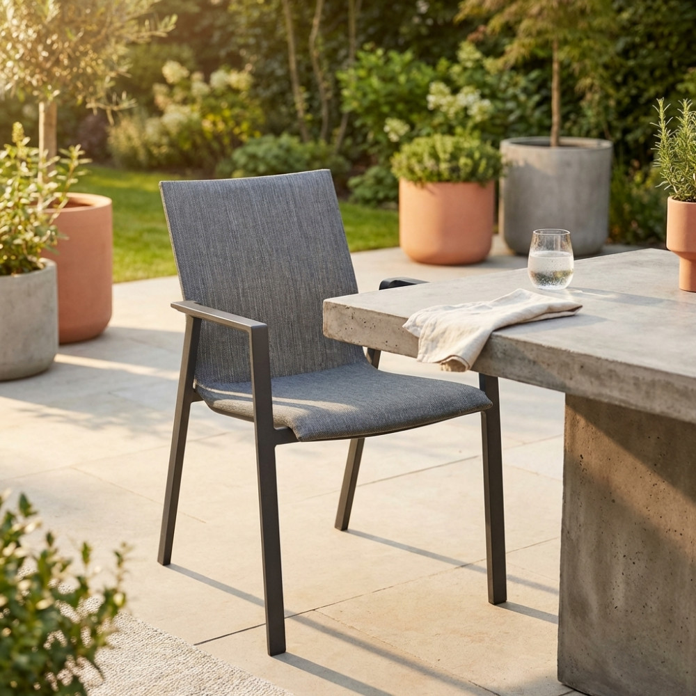 Struttura in allumino BIANCO o ANTRACITE seduta e schienale in textilene imbottito Dimensioni: cm 55,5 x 60 x 83 h