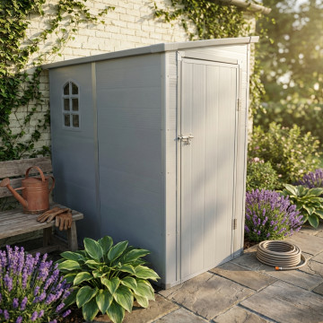 Casetta in plastica con finestra MARRONE o GRIGIO CHIARO Dimensioni: cm 111 x 191 x 194 h