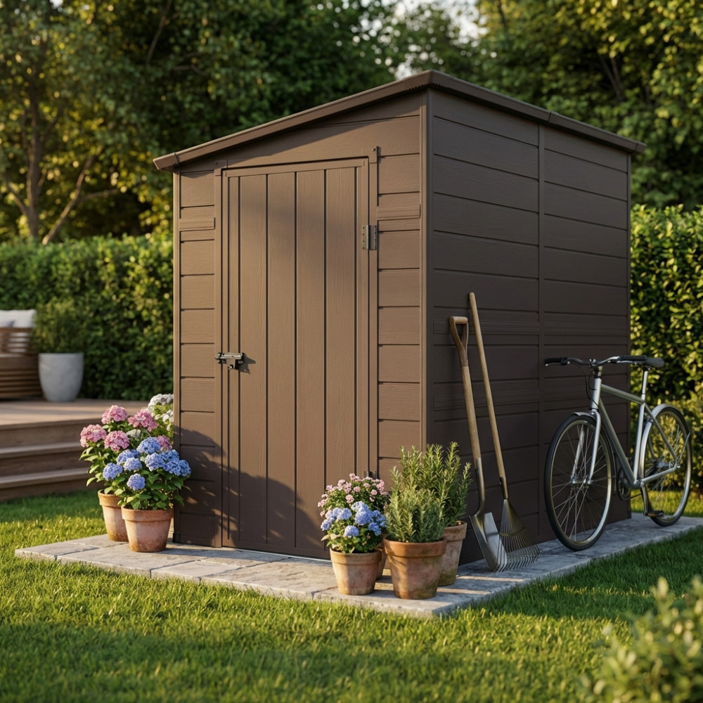 Casetta in plastica con finestra MARRONE o GRIGIO CHIARO Dimensioni: cm 143 x 247 x 194 h