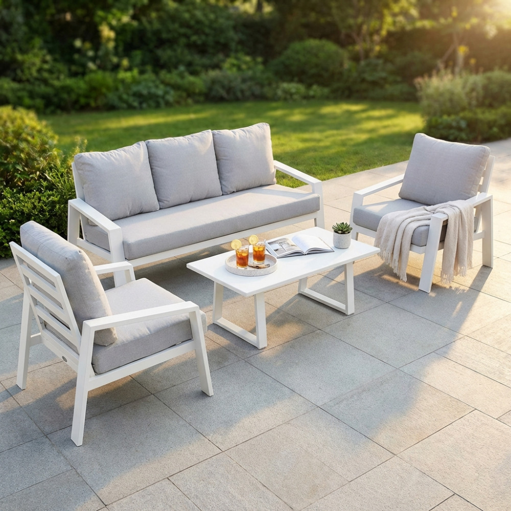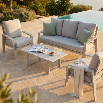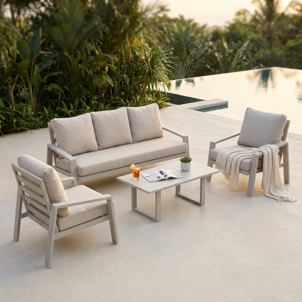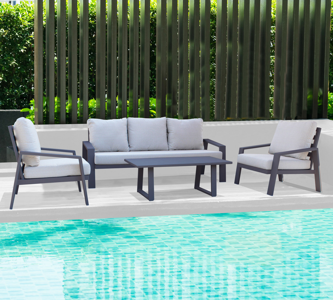 Struttura in allumino TORTORA, ANTRACITE, BIANCO o TAUPE con cuscini in poliestere di spessore 12 cm, KD Dimensioni: D.190x80x80/P.88x80x80/T.110x60x40