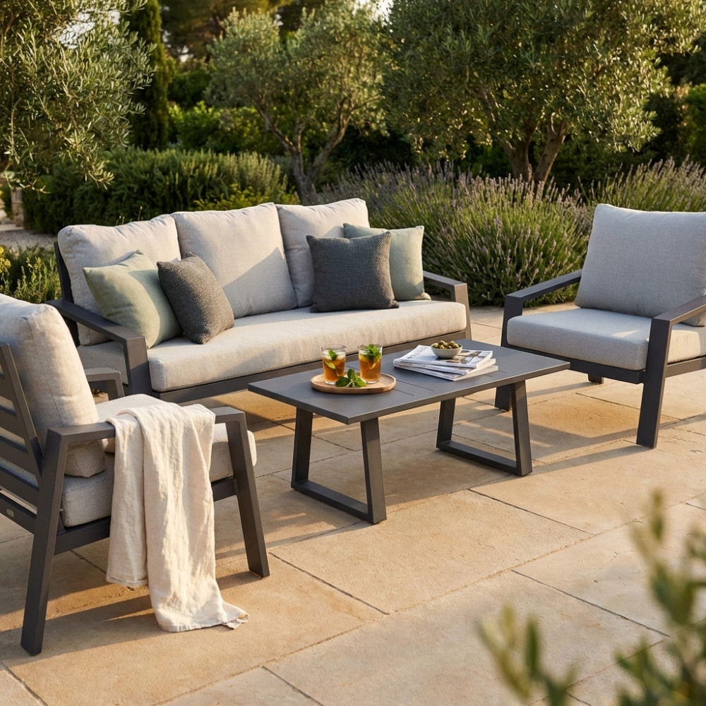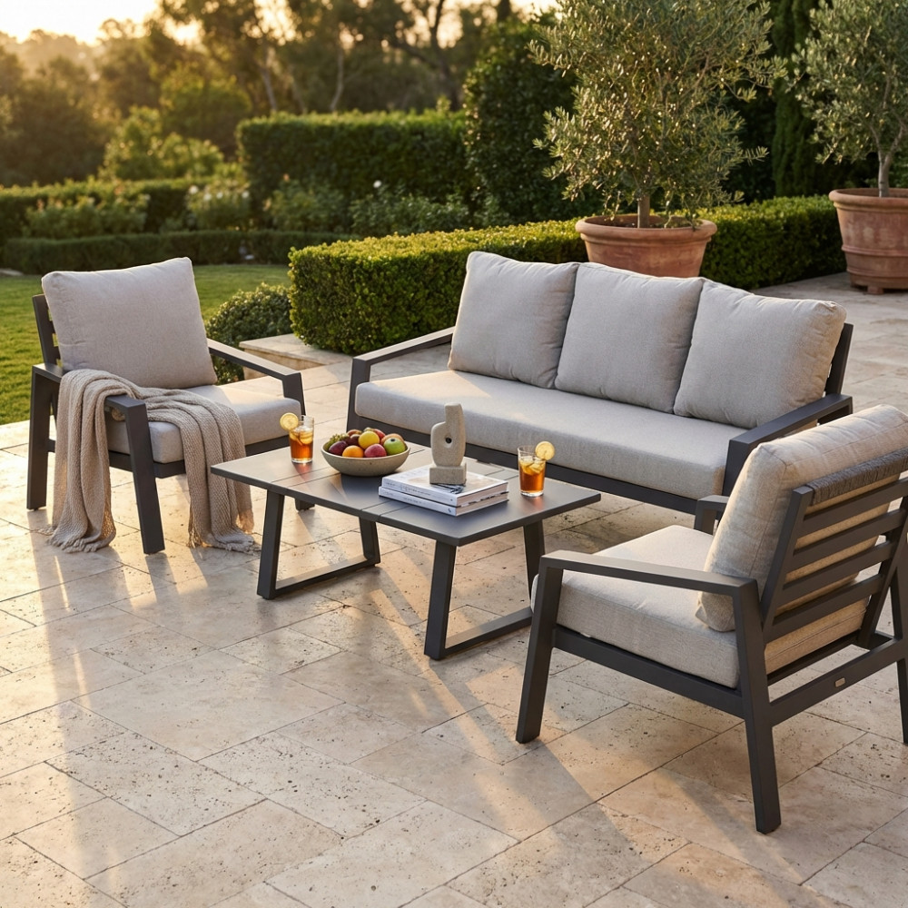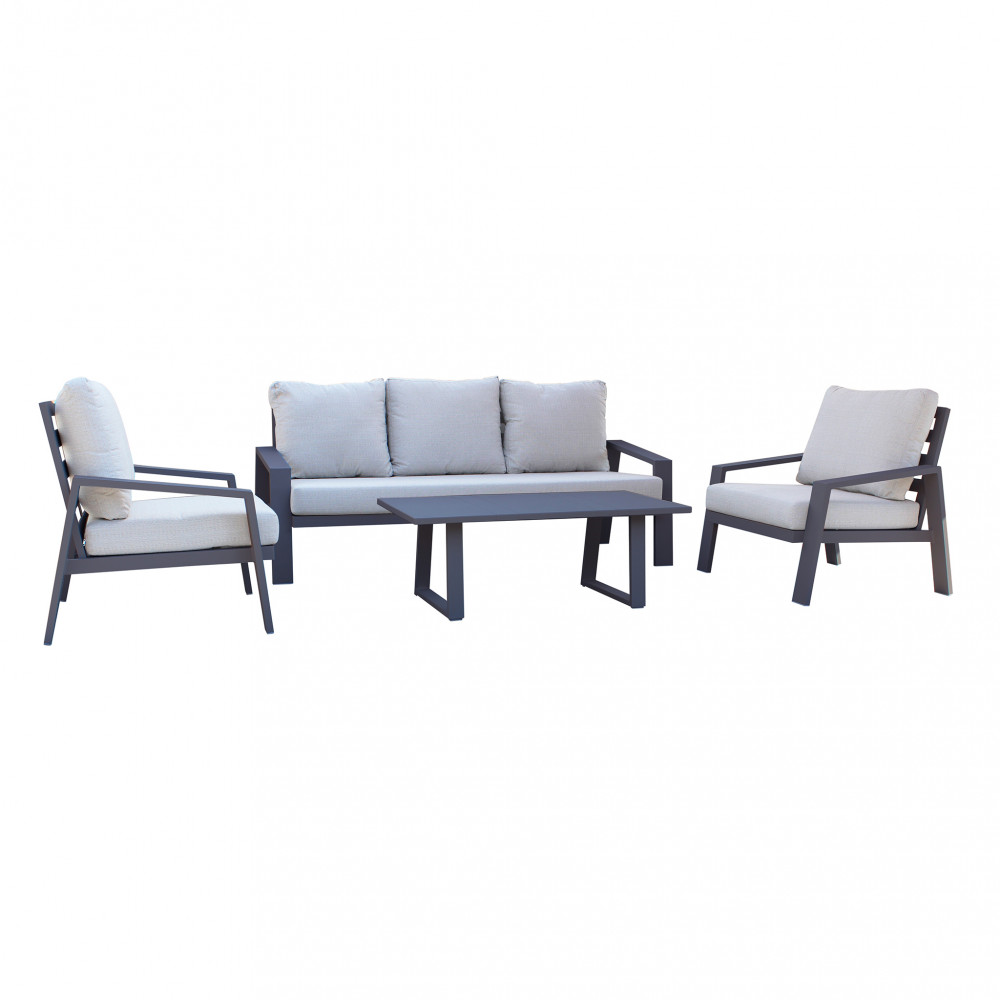 Struttura in allumino TORTORA, ANTRACITE, BIANCO o TAUPE, con cuscini in poliestere di spessore 12 cm, KD Dimensioni: D.190x80x80/P.88x80x80/T.110x60x40