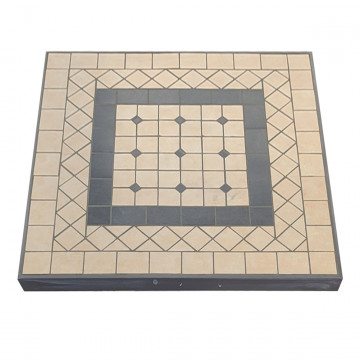 Piano ovale con mosaico MARRONE CHIARO e ANTRACITE base in ferro verniciato a polvere antracite Dimensioni: cm 80 x 80 x 74 h