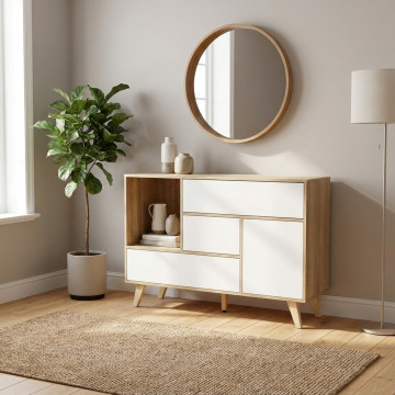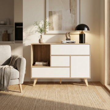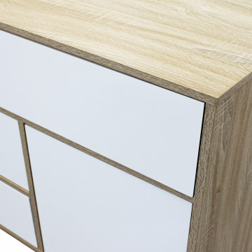 Mobile in melammina con 1 ante, 3 cassetti e 1 ripiano naturali, struttura bianca o grigio scura Dimensioni: 119 x 39,5 x 85,6 h