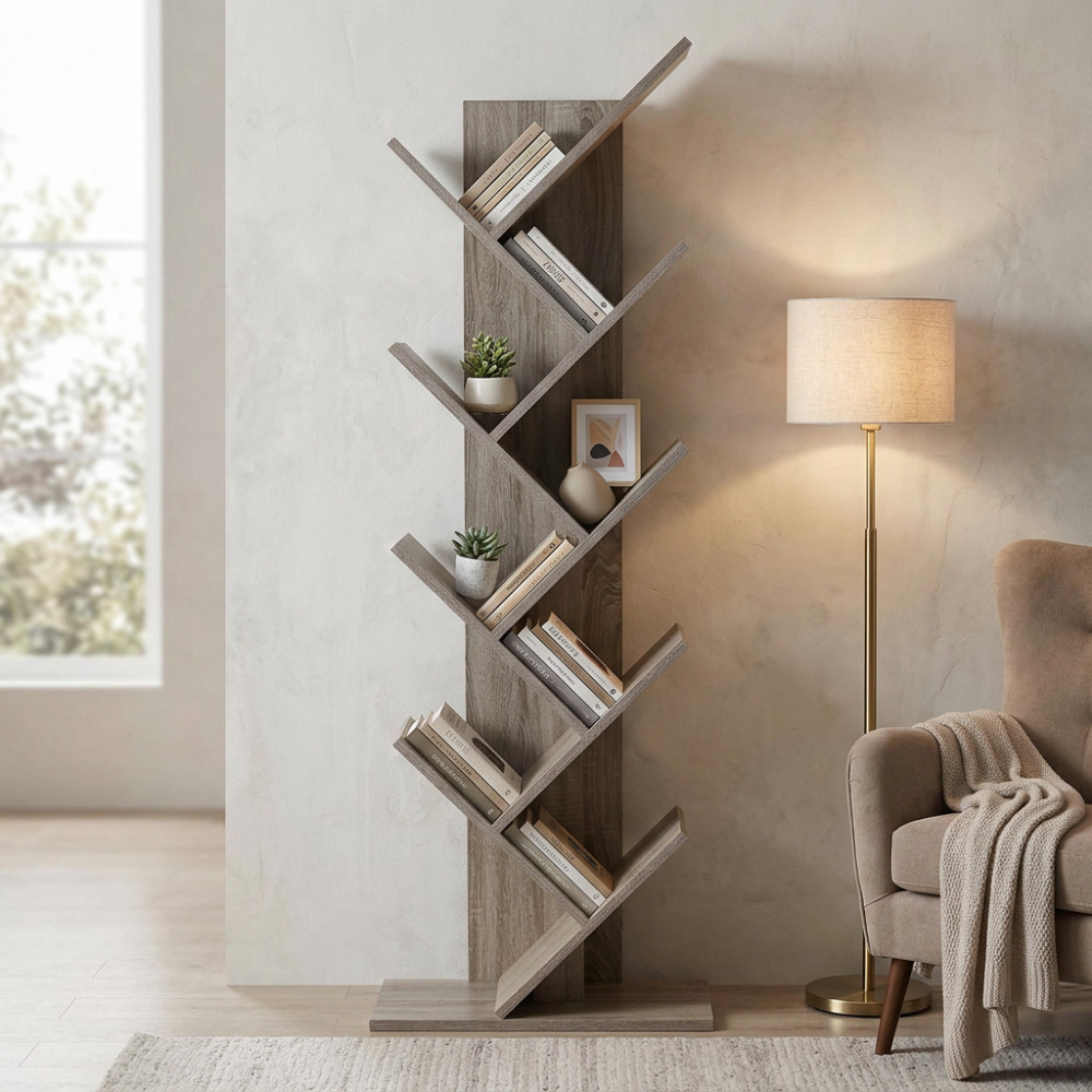 - Dati Tecnici Libreria in melammina naturale o bianca o grigio scuro con 8 ripiani Dimensioni: 50 x 25 x 141,5 h