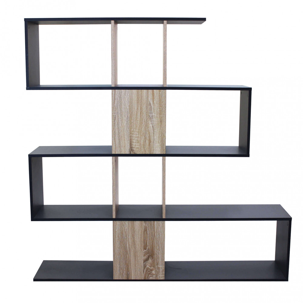 Libreria in melammina naturale e bianca o grigio scuro con 10 ripiani Dimensioni: 145 x 29 x 145 h
