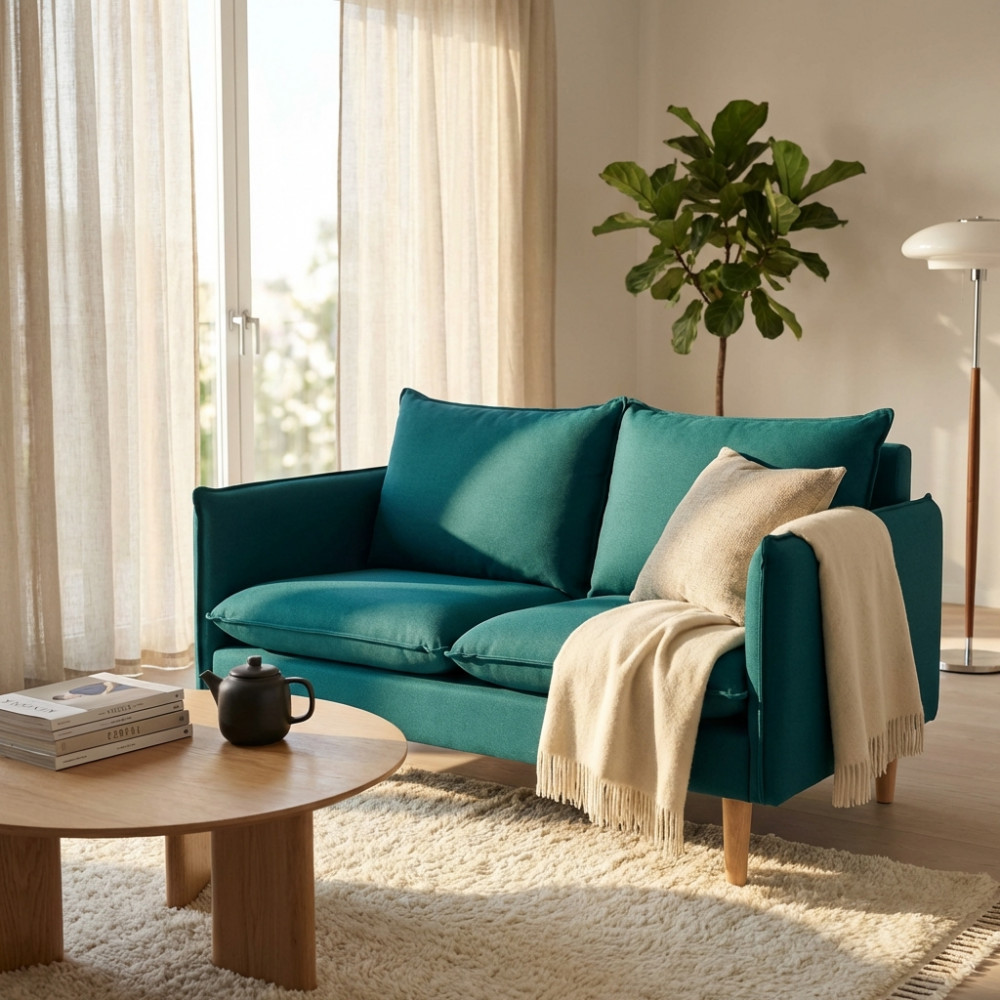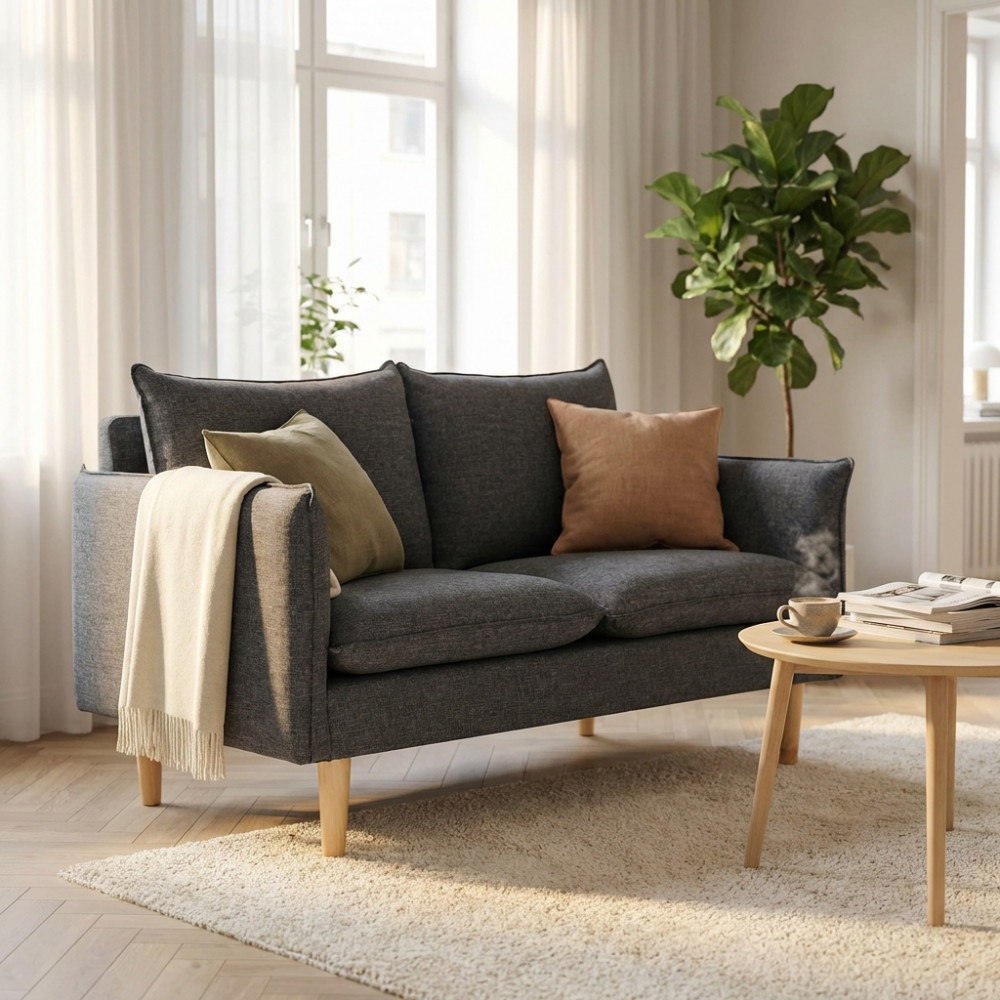 - Dati Tecnici Divano BEIGE, BLU, GRIGIO SCURO, VIOLA o CIANO con gambe in legno Dimensioni: cm 130 x 84 x 51 h