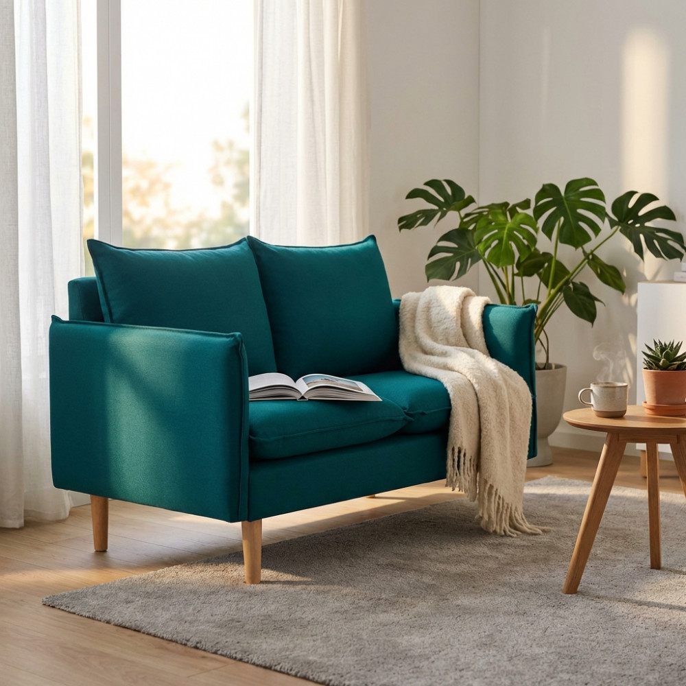 - Dati Tecnici Divano BEIGE, BLU, GRIGIO SCURO, VIOLA o CIANO con gambe in legno Dimensioni: cm 130 x 84 x 51 h