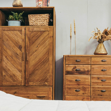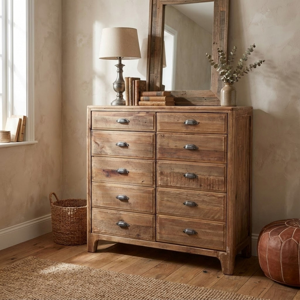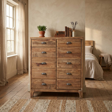 - Dati Tecnici Mobile con 10 cassetti in legno di pino riciclato Dimensioni: cm 105 x 48 x 113 h