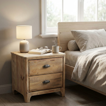 - Dati Tecnici Mobiletto con 2 cassetti in legno di pino riciclato Dimensioni: cm 55 x 45 x 55 h