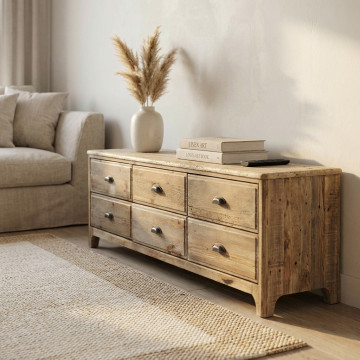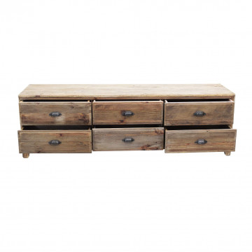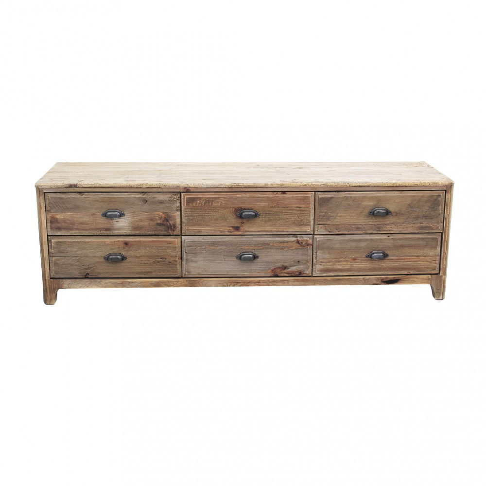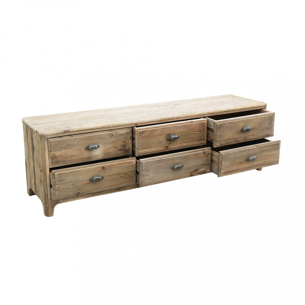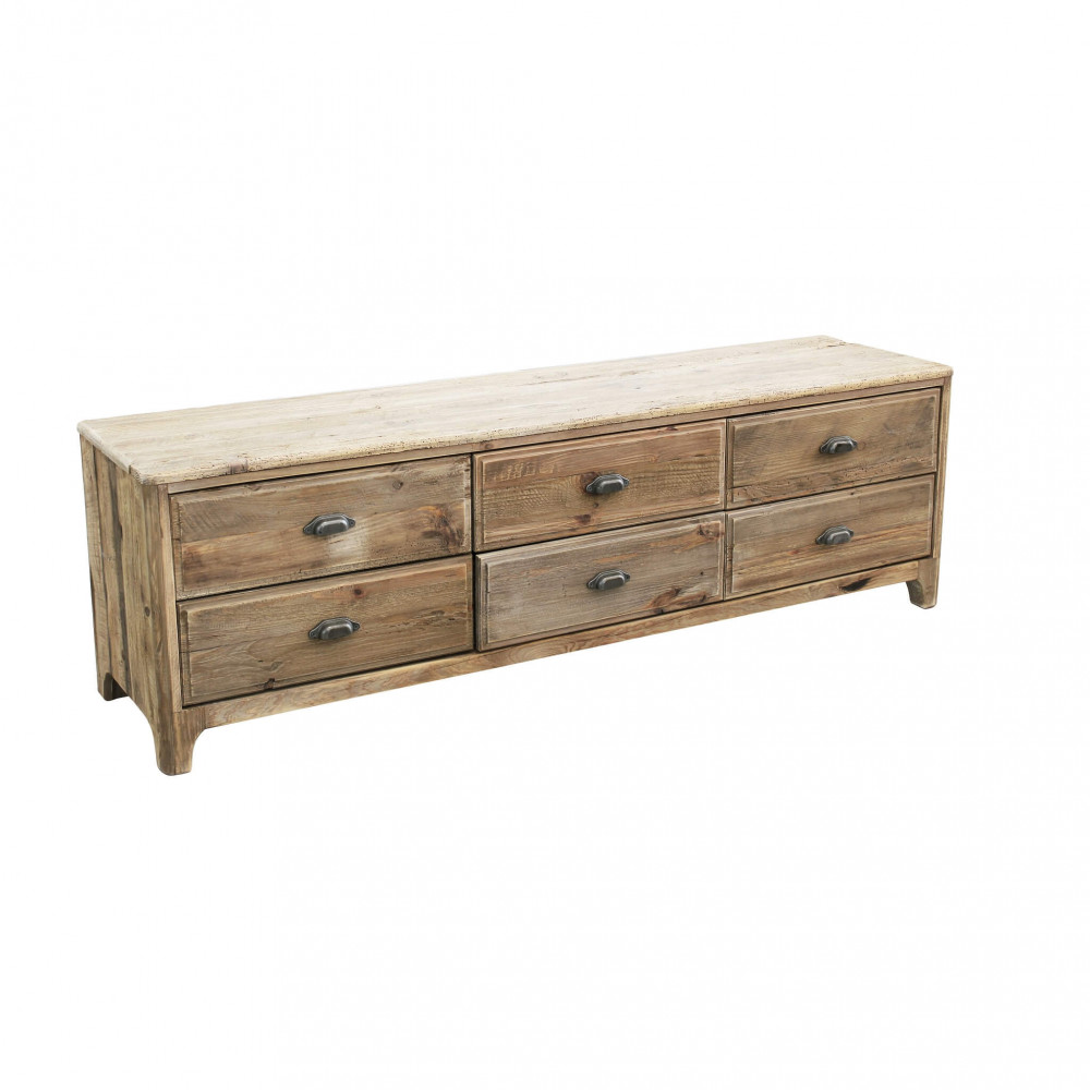 - Dati Tecnici Porta TV con 6 cassetti in legno di pino riciclato Dimensioni: cm 180 x 45 x 55 h
