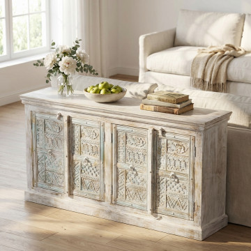 - Dati Tecnici Mobile in legno di mango con 4 ante Dimensioni: cm 180 x 40 x 90 h