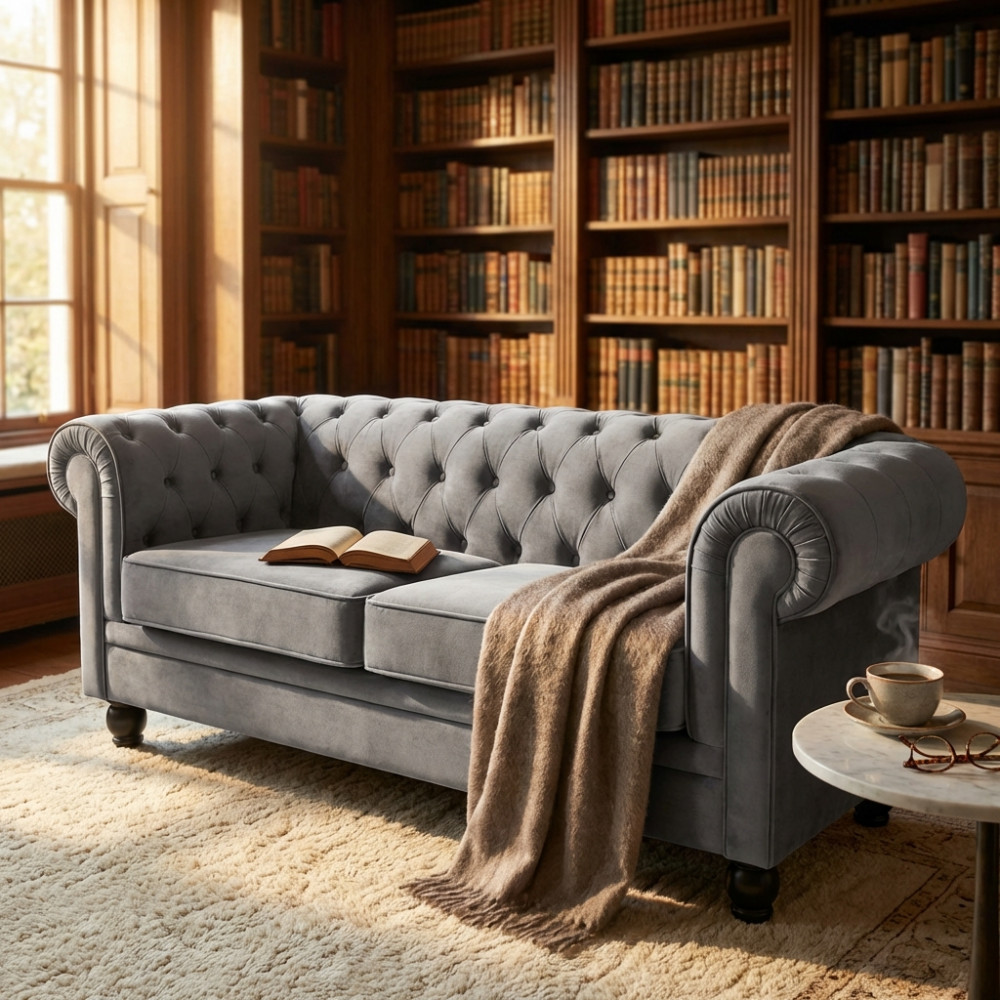 DIVANO 3 POSTI CHESTERFIELD IN VELLUTO TAUPE