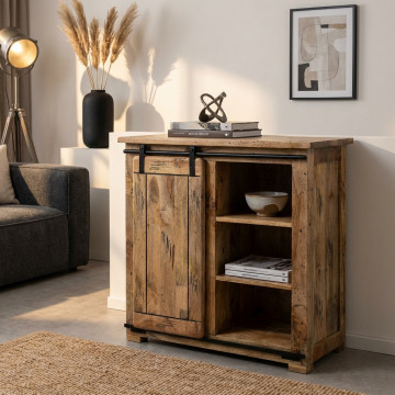 - Dati Tecnici Mobile in legno di mango con 1 anta scorrevole e 3 ripiani Dimensioni: cm 90 x 45 x 90 h