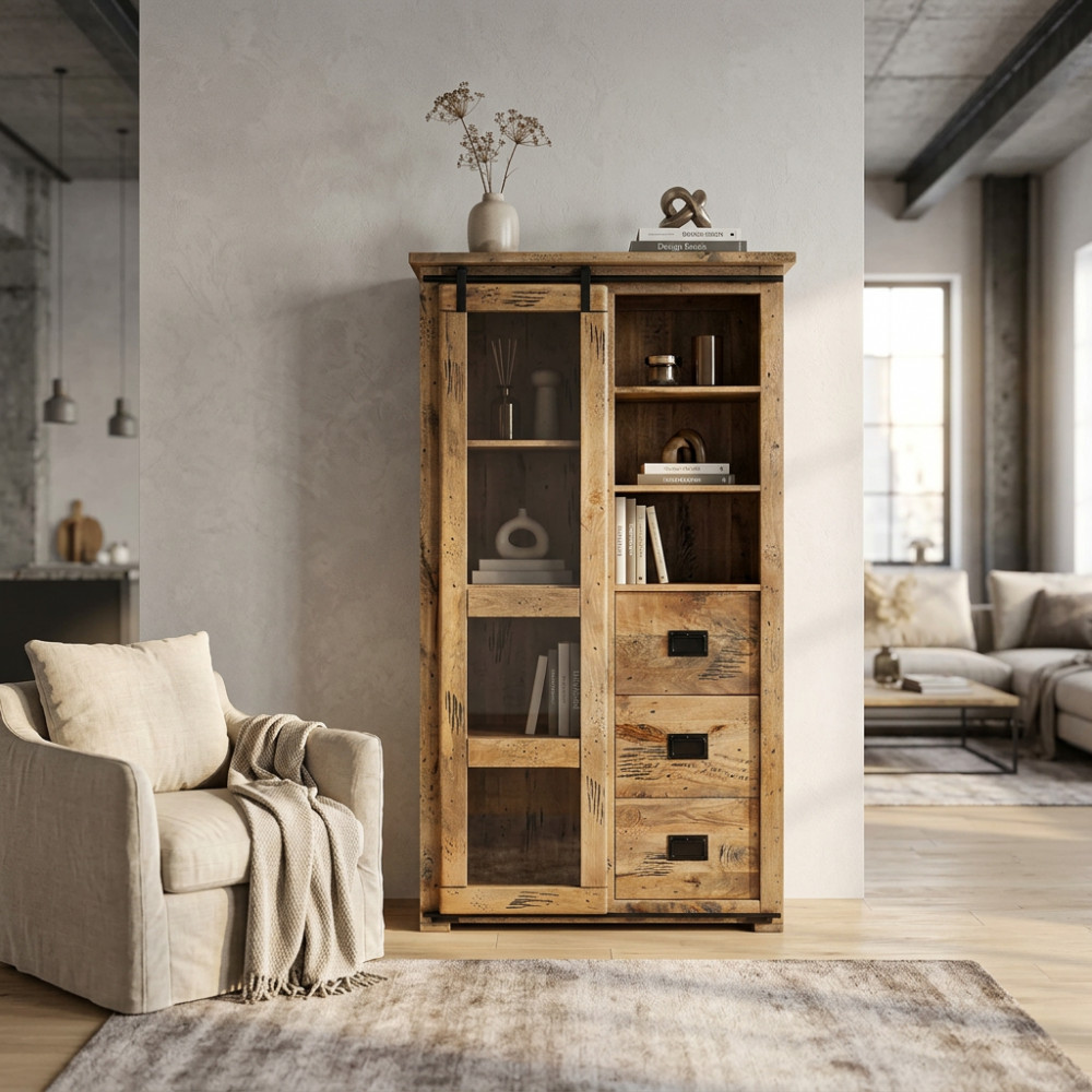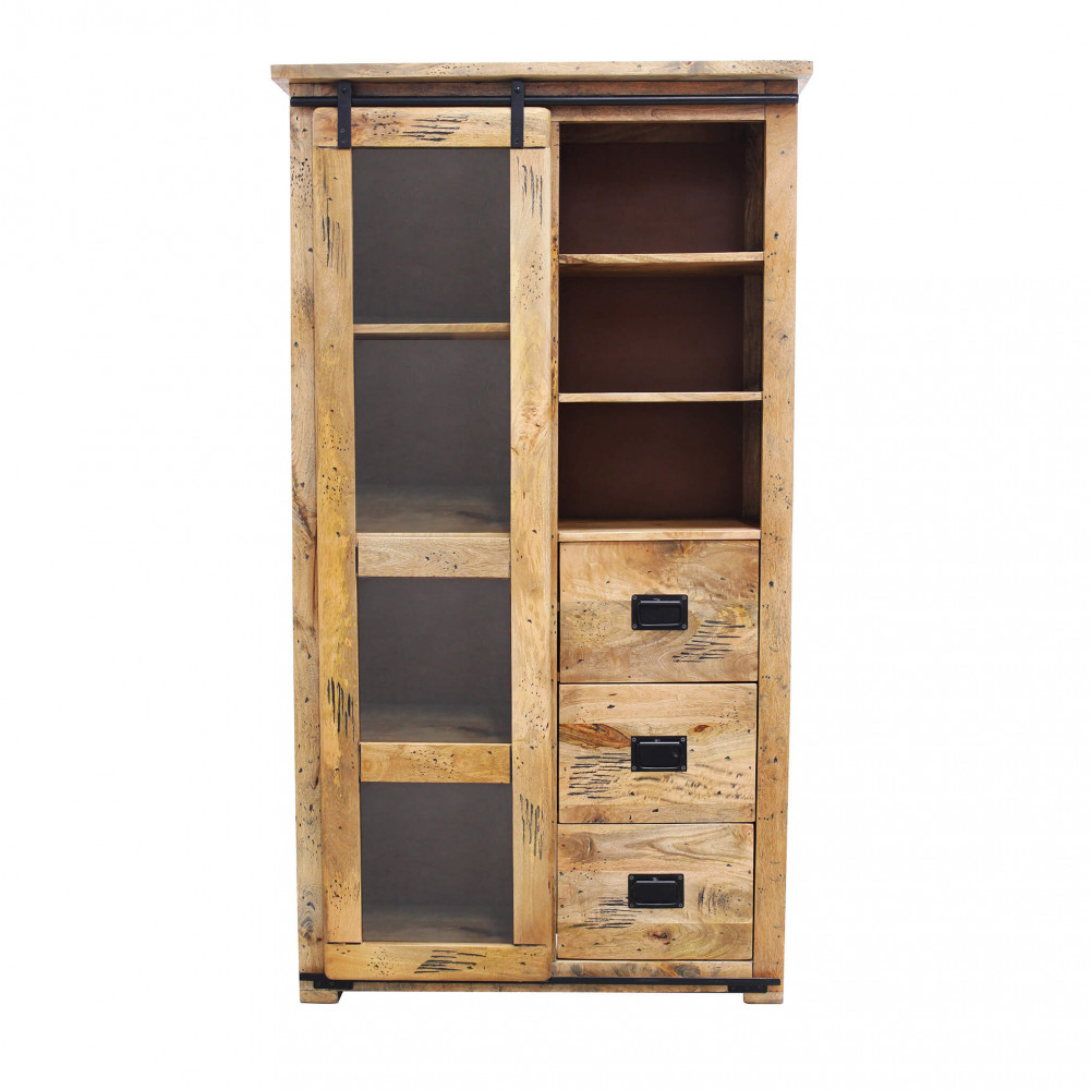 - Dati Tecnici Mobile in legno di mango con 1 anta scorrevole, 7 ripiani, 3 cassetti Dimensioni: cm 100 x 45 x 180 h
