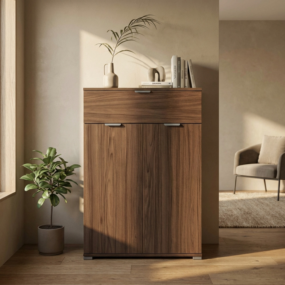 MOBILETTO CON 2 ANTA E 1 CASSETTO TINTA NOCE