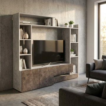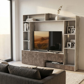 Parete in legno GIRGIO EFFETTO CEMENTO e GRIGIO SCURO EFFETTO CEMENTO Dimensioni: cm 180 x 28/40 x 165 h