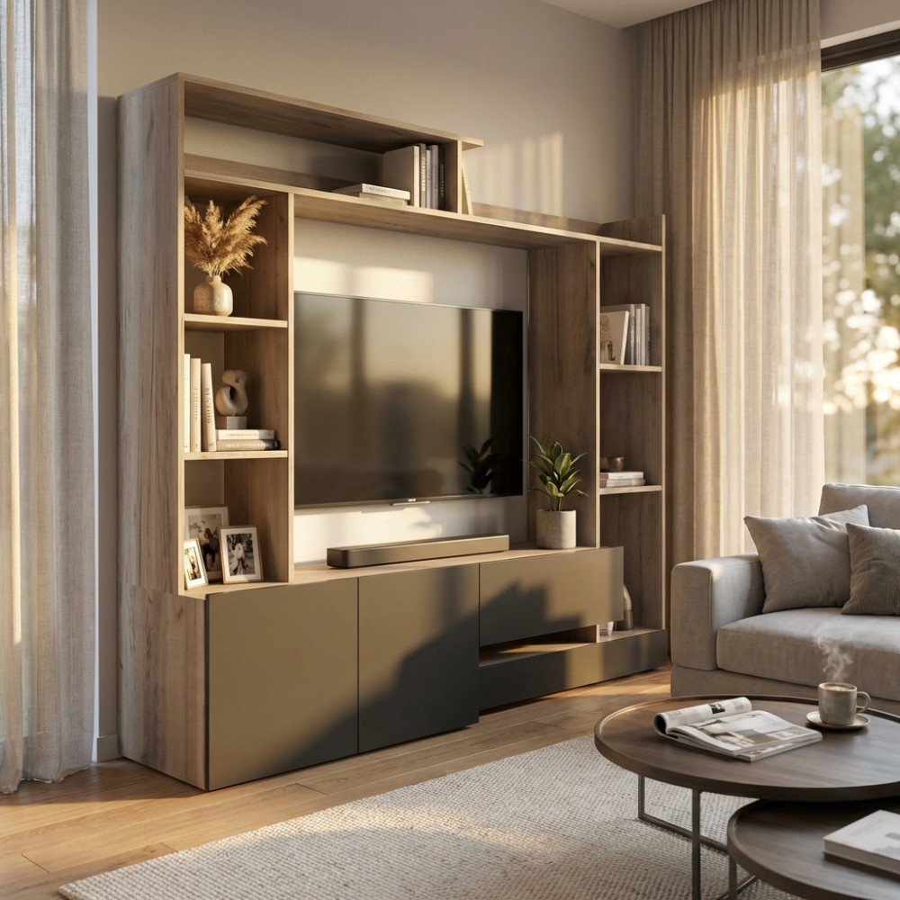 PARETE SOGGIORNO ENTRY BIANCO E ROVERE CHIARO