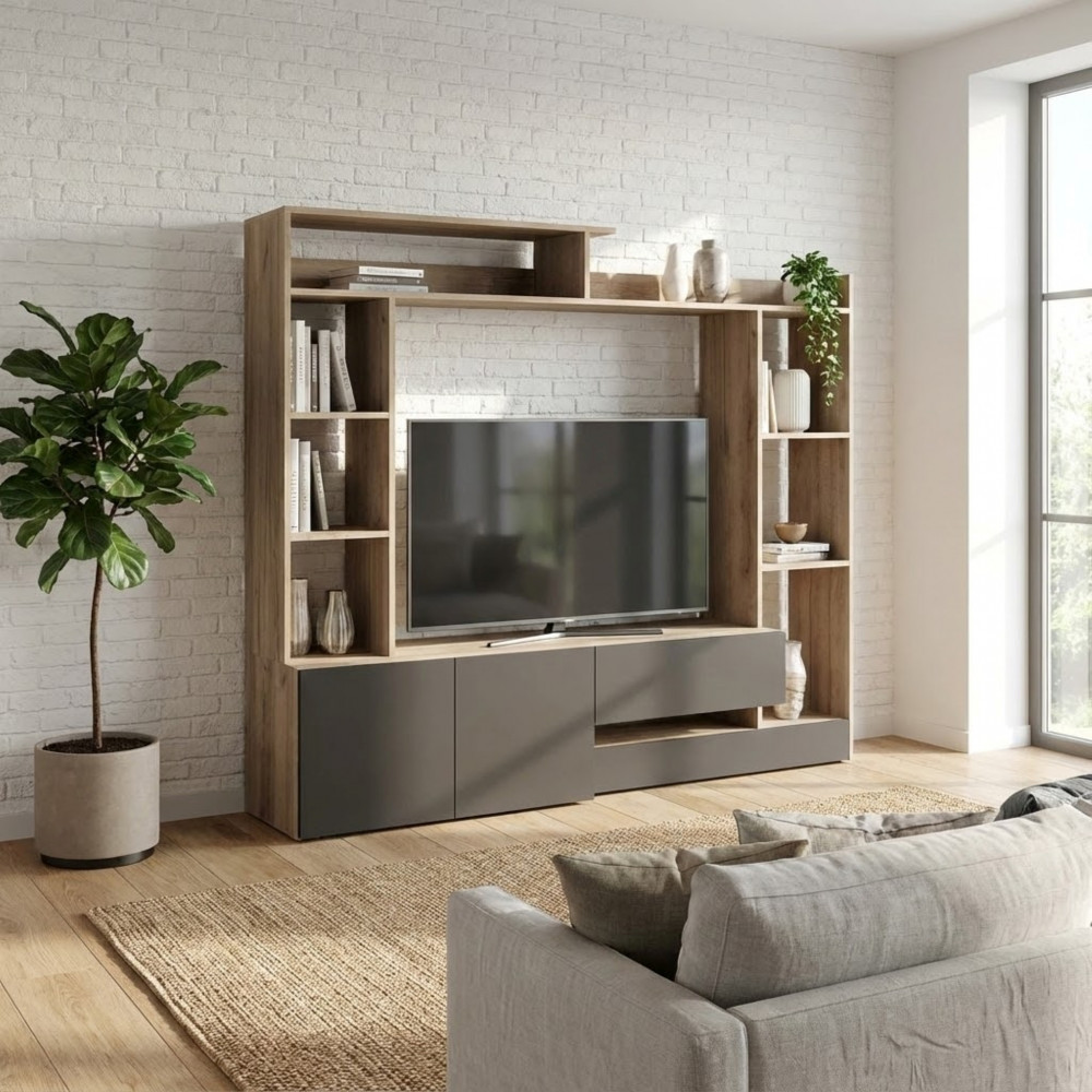 PARETE SOGGIORNO ENTRY ANTRACITE E OLMO