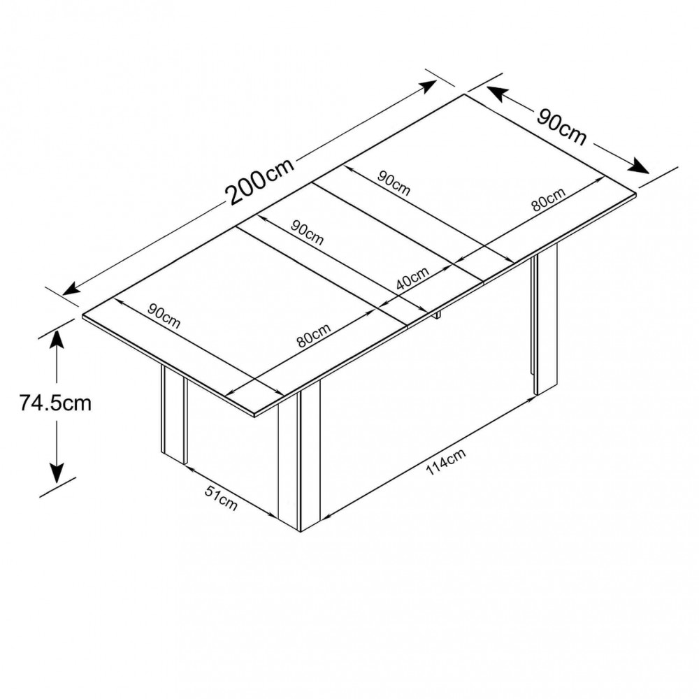 - Dati Tecnici Tavolo in legno BIANCO Dimensioni: cm 160/200 x 90 x 75 h