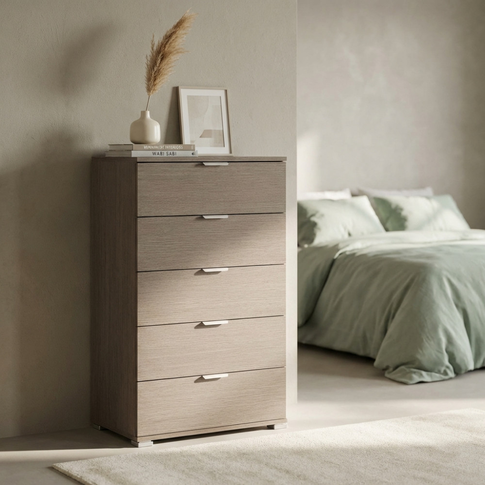 CASSETTIERA 5 CASSETTI ROVERE GRIGIO