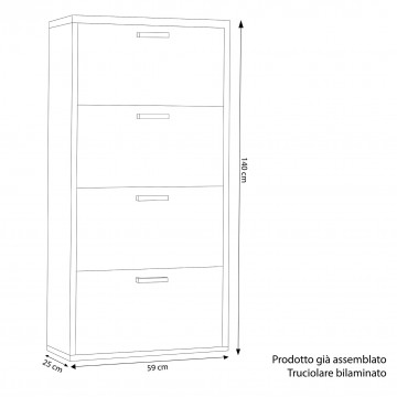 Scarpiera in legno OLMO CHIARO spessore 16 mm Dimensioni: cm 59 x 25 x 140 h