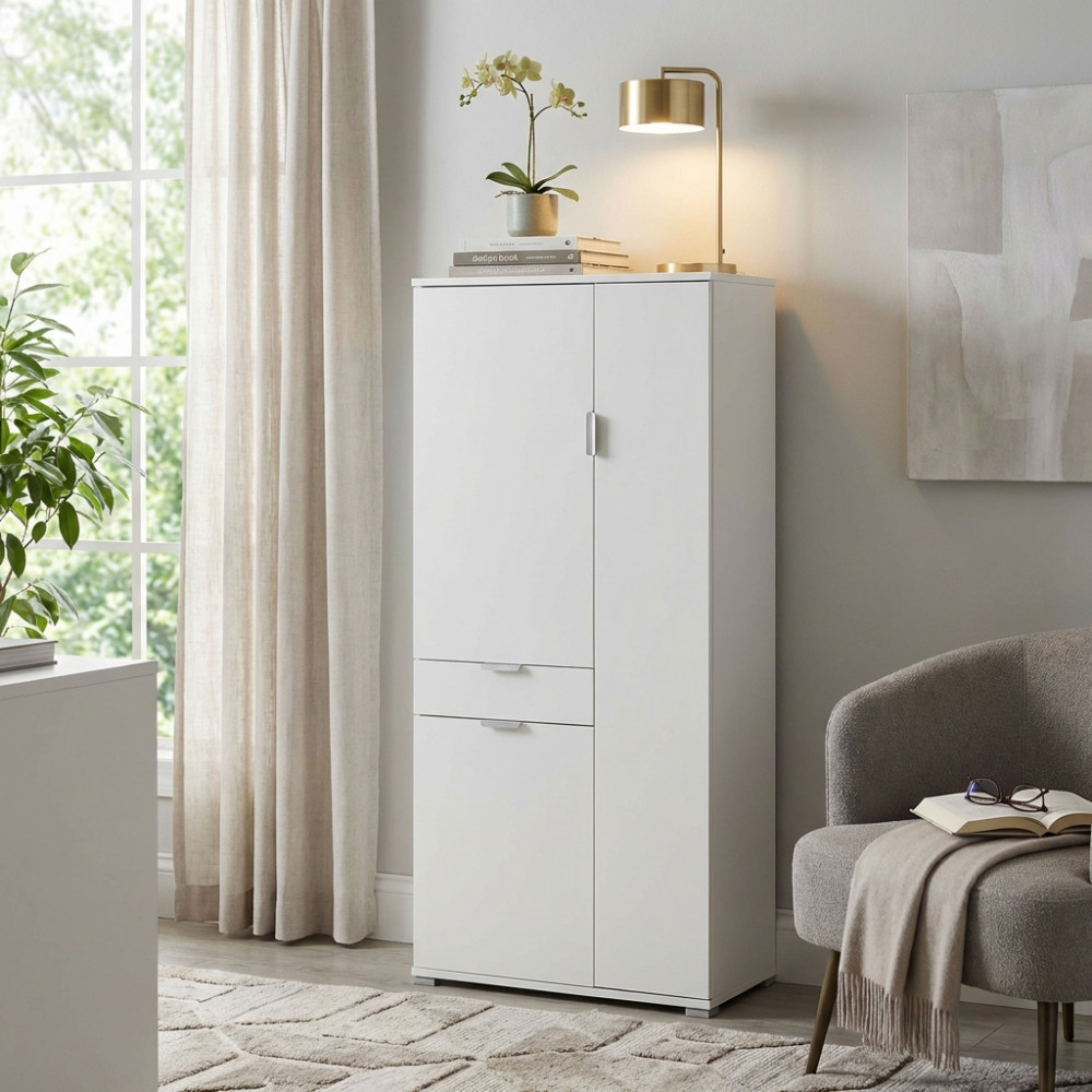 ARMADIO CON 3 ANTE E 1 CASSETTO BIANCO