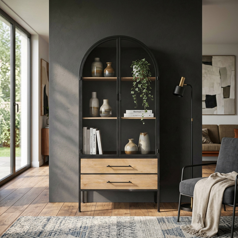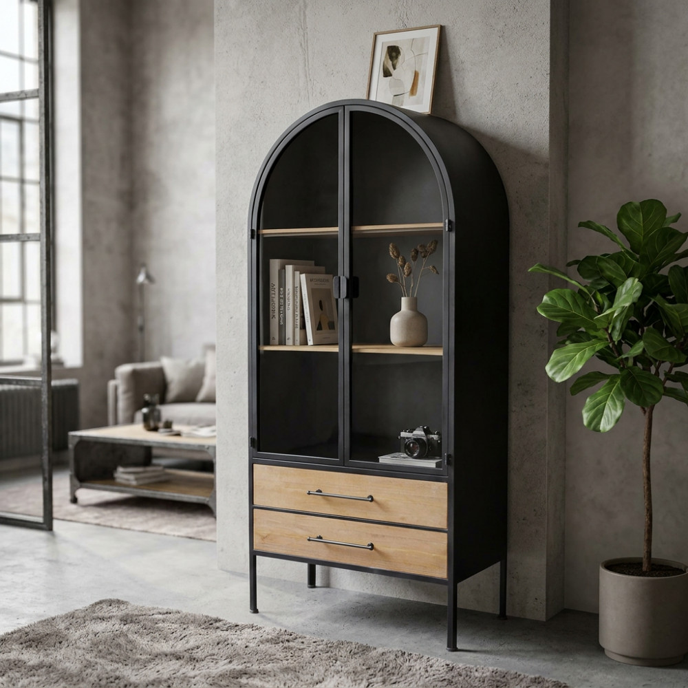 - Dati Tecnici Mobile in ferro e legno con 2 ante, 2 ripiani e 2 cassetti Dimensioni: cm 81,5 x 40 x 180 h