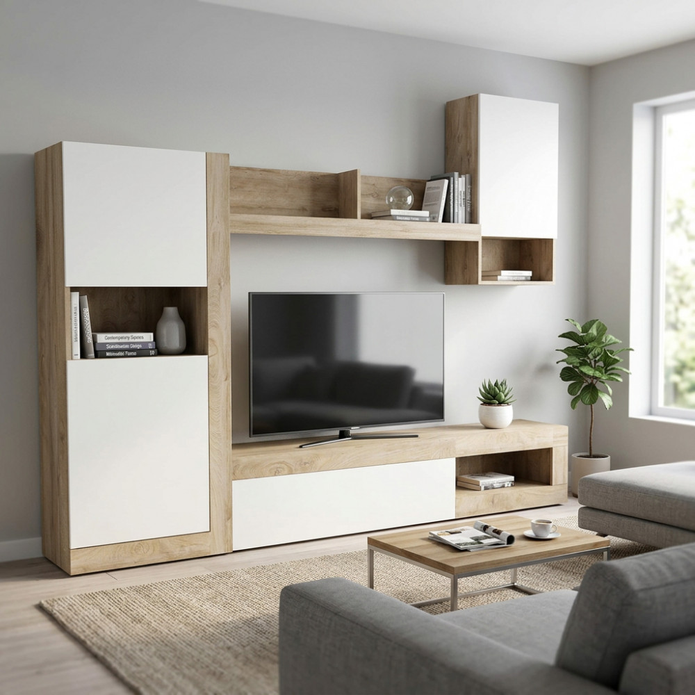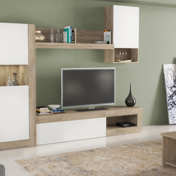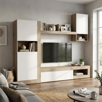 PARETE SOGGIORNO ROOMY BIANCO E ROVERE CHIARO
